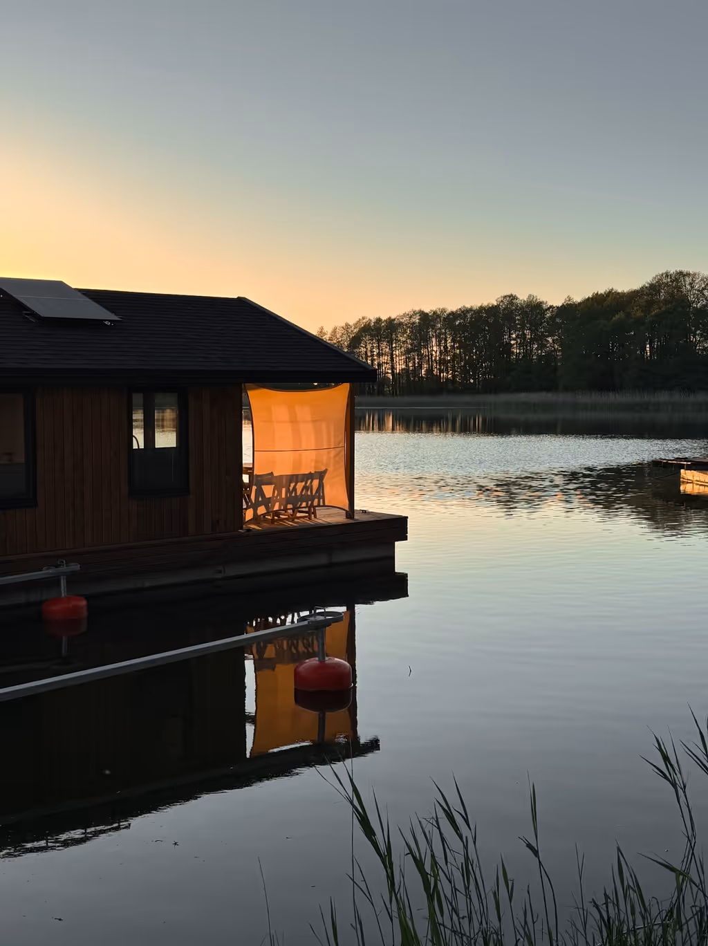 Every sailor worth their salt knows how to find their way to Sztynort. It’s the Great Masurian Lakes route, folks – sailing into the marina, sea shanties in the air, and captain’s hats on every other head. But the floating cabins? They’re tucked a bit off to the side, where the 10-on-the-Beaufort-scale party vibes don’t quite reach. Still, it’s just a laid-back stroll to grab a quality bite at Baba Pruska (highly recommended), catch a live concert, pop into Memuak – Sztynort’s cultural hub – or even explore the local palace. Add in evening soaks in a hot tub and swims in the lake, and boredom doesn’t stand a chance.