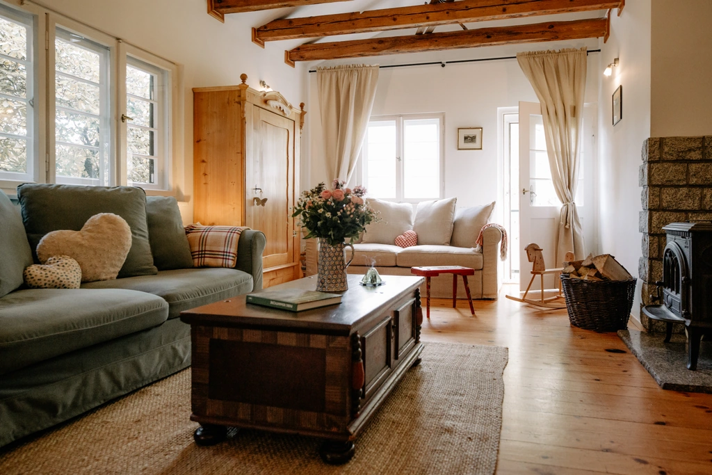 Jeśli marzy Wam się bajkowa zima u podnóża Śnieżki, w miejscu z charakterem i historią, Willa Tyrolczyk będzie dobrym adresem. To klimatyczny dom dla 8 osób, urządzony w stylu tyrolskim, z dbałością o detale – drewniane meble, rzeźbione krzesła z serduszkami i dodatki podkreślające górski charakter regionu. Wygoda i komfort idą tu w parze z bardzo dobrym stylem. Po dniu na śniegu można ogrzać się przy kominku i odpocząć w przytulnym wnętrzu, a duży ogród i taras z widokiem na Karkonosze dopełniają całość i sprawiają, że to świetne miejsce na zimowy wypad ze znajomymi.