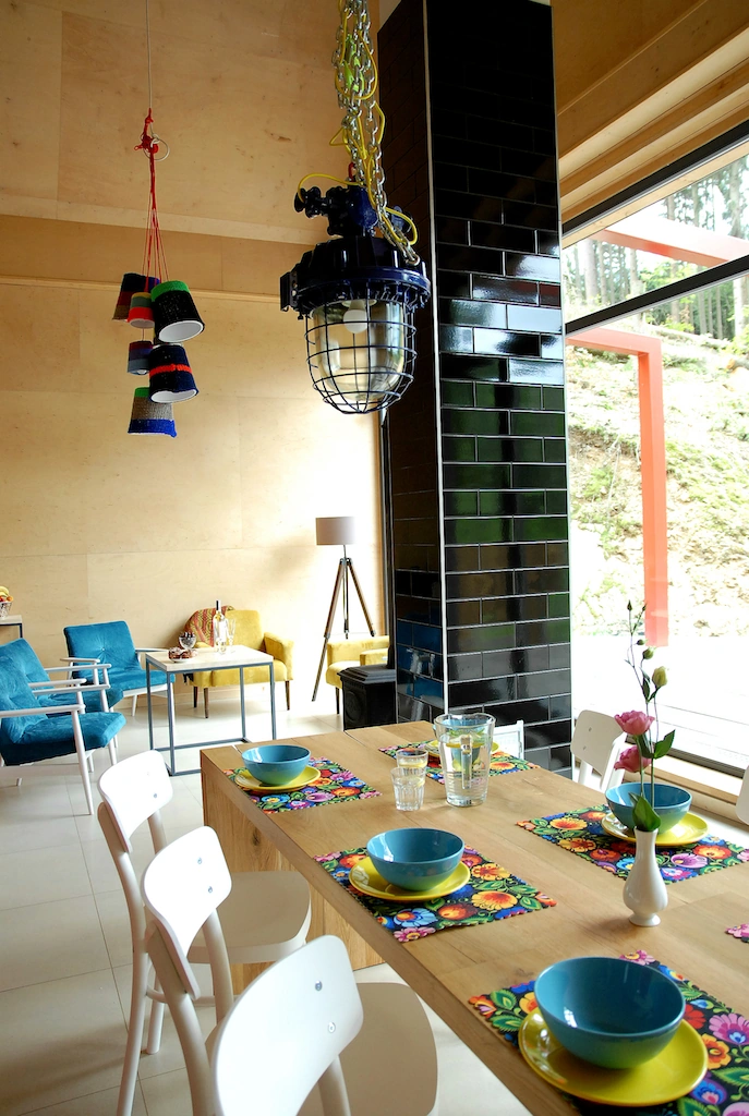 Pod skałą takie nowoczesne cudo do wynającia w całości oraz dostępnymi gospodarzami, którzy wiedzą co to jest dizajn, handmade i upcykling. Czyli wchodzicie, zastanawiacie się, dlaczego wcześniej nie wpadliście na pomysł pomalowania rury na wściekły amarant, bo kto by pomyślał, że coś takiego będzie dobrze wyglądać. Z wielu innych plusów: piwniczka na wypadek zapomnienia wina i możliwość zamówienia zakupów pod nos. „Przestrzeń, światło, las z oknem i nowoczesny wystrój dopracowany w najmniejszych szczegółach (tzw. dizajn :D) - byłam w bardzo wielu klimatycznych miejscach ale Dom pod skałą to nowa jakość. Sama lokalizacja to świetna baza wypadowa - podczas tygodniowego pobytu każdego dnia odhaczaliśmy kolejny punkt z listy. Dodatkowo ogromny plus za świetne zaplecze dla dzieci! Brakuje tylko przepastnej kanapy w salonie żeby paść po całym dniu wrażeń”