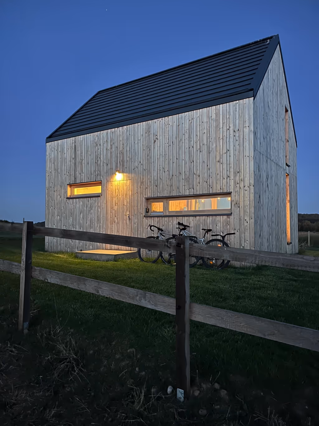 'Očarujúce miesto. Pozemok pripravený na vonkajší odpočinok. Chata sa nachádza na krásnom mieste pod lesom. Hoci sa zvonku zdá malá, v skutočnosti má veľa priestoru, je dobre vybavená a vidno, že výber materiálov a zariadenia nie je náhodný. V okolí veľa možností pre cyklistov! Na začiatku sme dostali zoznam miest, kde sa dá najesť alebo nakúpiť, čo nám pomohlo zorganizovať si čas. Bohužiaľ, počasie sa objednať nedá, čo je škoda 😉 Odporúčame!!!'.