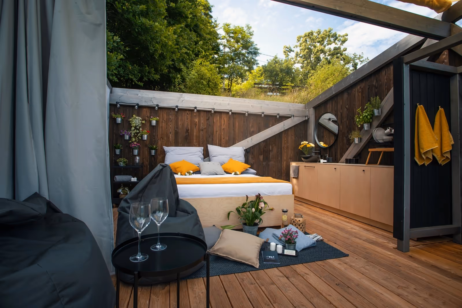 Stojíte o totálne vypnutie bez rušivých vplyvov civilizácie? Tak máme niečo netypické - posteľ pod holým nebom. A dokonca takú bez štyroch betónových múrov a obrovskej strechy nad hlavou. Tu budete mať možnosť vychutnať si bezprostrednosť kontaktu s prírodou. A to nielen vďaka obrovskému “panoramatickému oknu” v podobe terasy, ale aj vďaka otváracej elektrickej streche... nad ktorou budú už iba koruny stromov a nebo. Tu môžete vylihovať aj celý deň a nikto sa vám nebude čudovať. Ešte by sa k vám aj pridali. Jednoducho totálny reset iba pre vás a na želanie.