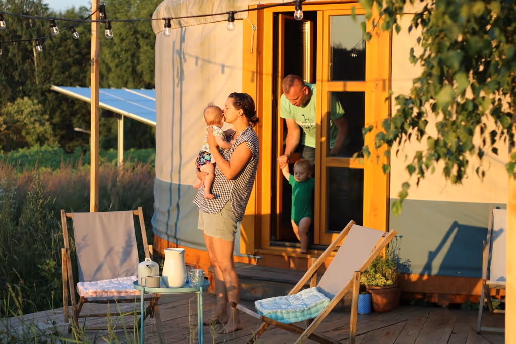 'Nie pamiętam kiedy tak odpoczywaliśmy. Mieliśmy plany na zwiedzanie, kajaki tymczasem prawie nosa nie wychyliliśmy z jurty. Obezwładniająca cisza i spokój, Cudowny taras z zejściem na pomost z którego można łowić ryby. Dzieci miały ogromną atrakcję śpiąc na antresoli. Właściciele nienarzucający się, ale zawsze pomocni i pod telefonem. Obfite kosze śniadaniowe (wystarczał 1 na naszą 4 osobową rodzinę). Restauracja przynależna do glampingu podaje pyszną, świeżą rybę w różnej postaci. Możliwość skorzystania z sauny. Jeśli szukasz odpoczynku - serdecznie polecam!'.