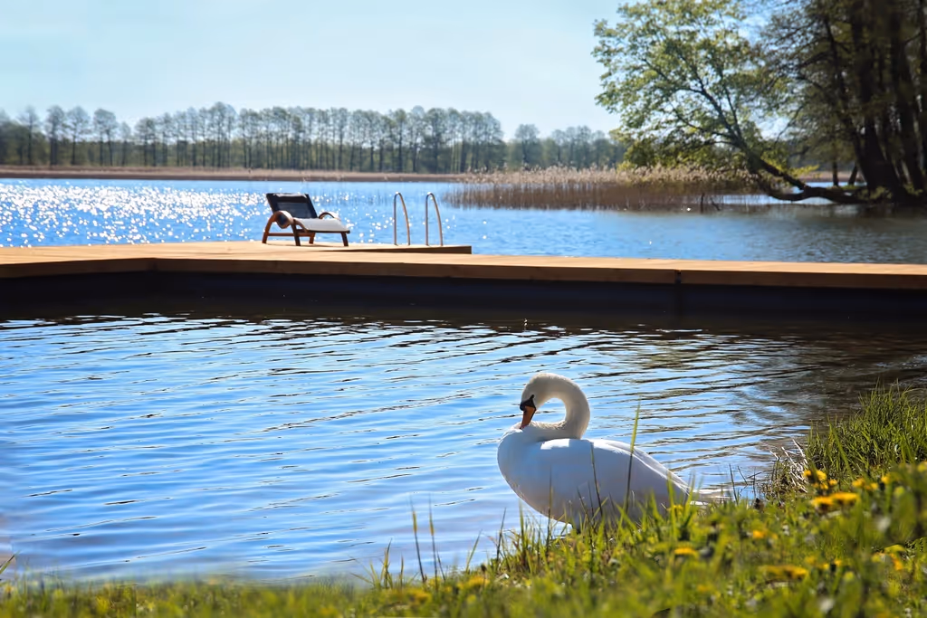 Zestawienie otwiera prawdziwy hit! Na zboczu w Sterławkach Średnich, na Mazurach, stoją namioty w wersji luks. Każdy z widokiem na Jezioro Dejguny, każdy z tarasem, idealnym na poranną kawę. Pod “tropikiem” znajdziecie sypialnie, aneks kuchenny, a nawet ogródek ziołowy, serio, jest tam wszystko, co trzeba. A śniadania? Codziennie rano, pod same poły namiotu dostaniecie kosz pełen lokalnych pyszności. Jakby tego było mało są dwie plaże, dwa podgrzewane baseny z widokiem na jezioro, kajaki, deski SUP, a nawet solarny katamaran i rowery do szukania wiatru w mazurskich polach. Zabierajcie dzieciaki i hop na rodzinną labę. Jest super plac zabaw, duży brodzik i plaże z łagodnym zejściem do jeziora. Wystarczy tych peanów, po prostu przeczytajcie opinię jednego z Gości.