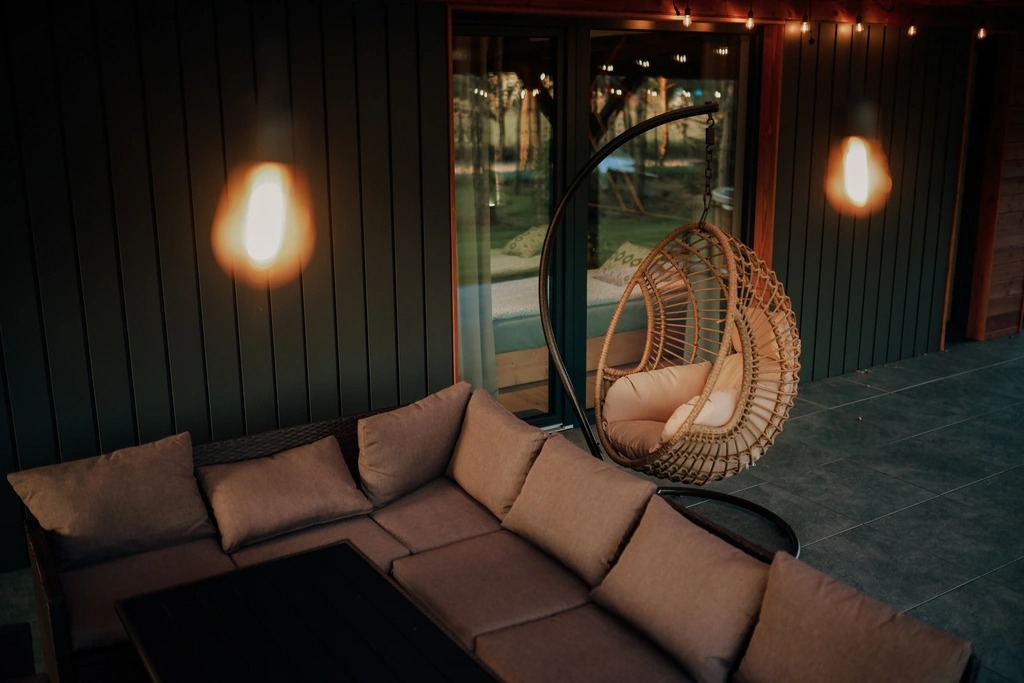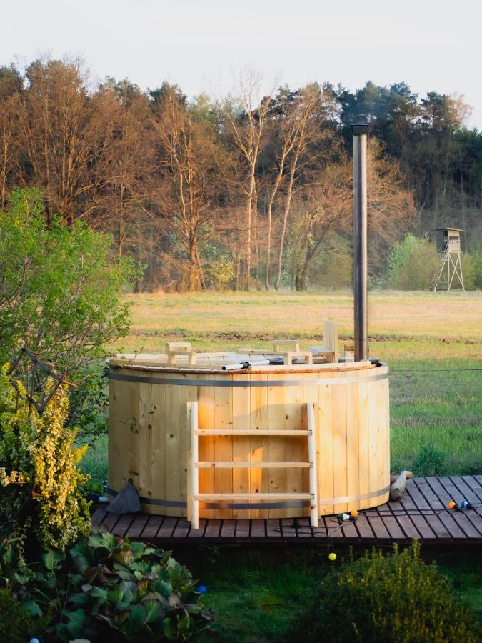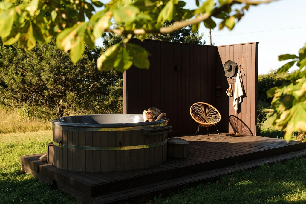 Wyobraźcie sobie: zero sąsiadów, pełna prywatność i przestrzeń tylko dla Waszej ekipy. Tu można robić wszystko to, co w mieście kończy się interwencją sąsiadów. Można tańczyć do rana w stodole, urządzać maratony w retro gry wideo, rozpalać ognisko w tipi nawet przy deszczu i rozkładać się na hamakowym polu jak zawodowi chillerzy. Dla miłośników_czek wellness – sauna z widokiem, balia na wieczorne seanse wodne, a fanów_ek sportu: boisko do siatkówki i dwanaście rowerów do zwiedzania okolicy. Gotujecie samodzielnie w kuchni, ale jeśli nikomu się nie chce się – Zielona Góra jest pół godziny stąd. Tutaj nikt się nie nudzi i nikt nikomu nie przeszkadza. Całe gospodarstwo jest do Waszej dyspozycji. No i jeden dwugodzinny pobyt w saunie jest w cenie, a przy 9 osobach wchodzi po 134 zł/os.