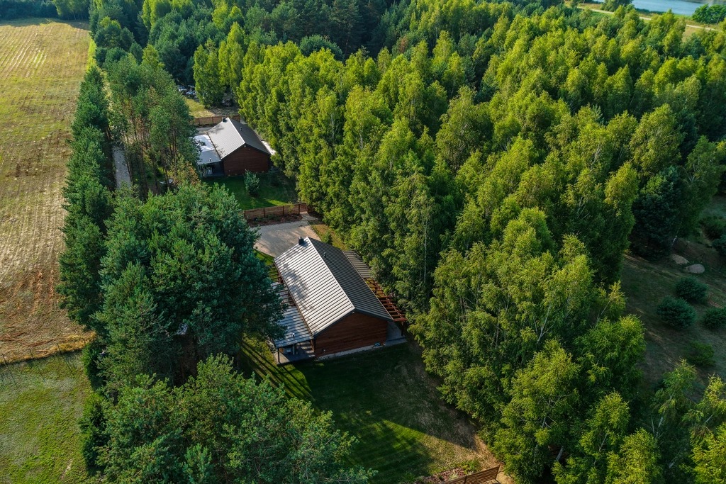 'Miejsce idealne na odpoczynek od miasta i ludzi. Las dookoła, za domem, w ogrodzie i w domu :) Niczego nam nie brakowało, bo domek wyposażony jest we wszystko co może się przydać na wyjeździe, nawet w puzzle. Mimo deszczowej aury fajnie było się ogrzać w jacuzzi i przy kominku. Na brak ciepła nie narzekaliśmy bo w domku, poza kominkiem, są kaloryfery. Na dodatek okolica jest tak cudna, że nawet w deszczu przyjemnie było spacerować nad jeziorami, przysiąść na pomoście czy delektować się ciszą panującą w lesie. Gdyby nie sympatyczni sąsiedzi, to przez 5 dni spotkalibyśmy tylko jedną osobę. Super miejsce dla psiarzy. Był to odpoczynek jakiego szukaliśmy :)'.
