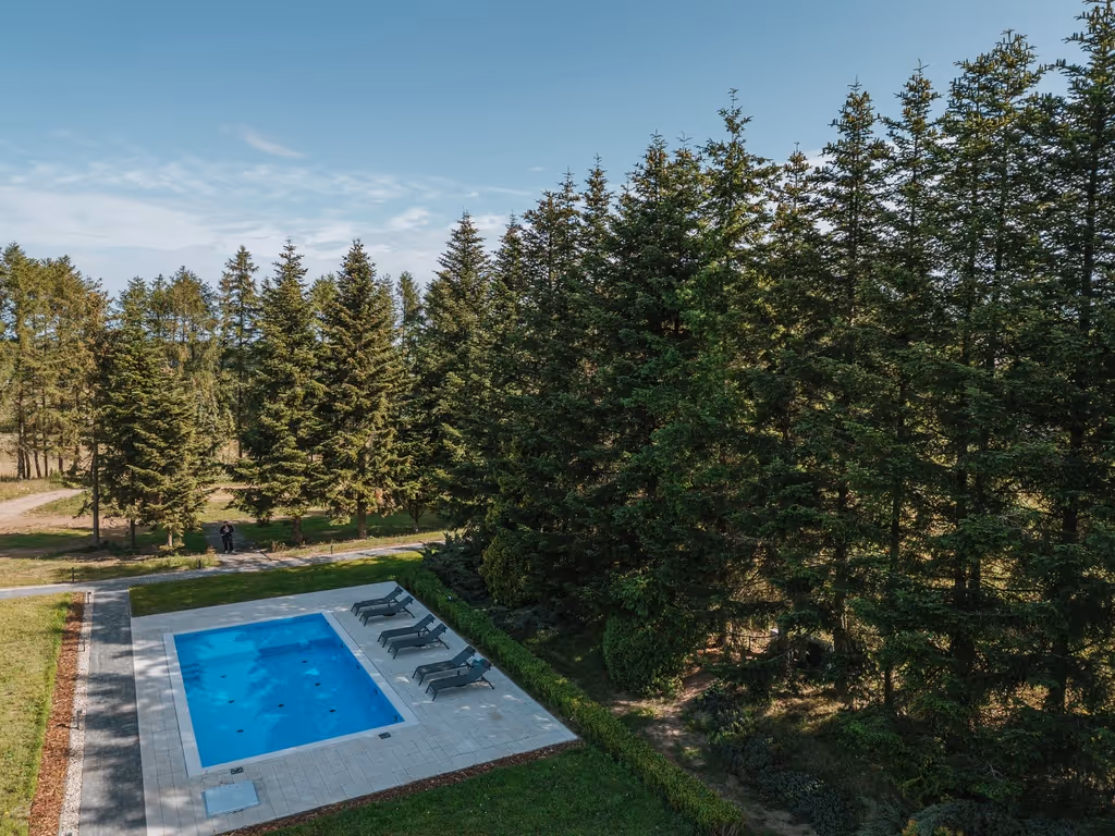 Dom, który niejednego estetę pogłaskał od środka. Lubicie niespodzianki? Bo mamy jedną na Mazurach. Po pierwsze, mamy tu dom z tradycyjną, mazurską fasadą i zaskakującym wnętrzem: pełnym naturalnych materiałów, kolorów ziemi i kojących właściwości. Nam jest miło od samego patrzenia. Po drugie – basen, nie inaczej! Przytulony do drzew, z widokiem na rozlewisko, podgrzewany, bez rezerwacji leżaków. W sam raz dla wyjątkowo wybrednych osobników, którzy palca nie zmoczą byle gdzie. Tu moczy się wyjątkowo przyjemnie, nie tylko palce.