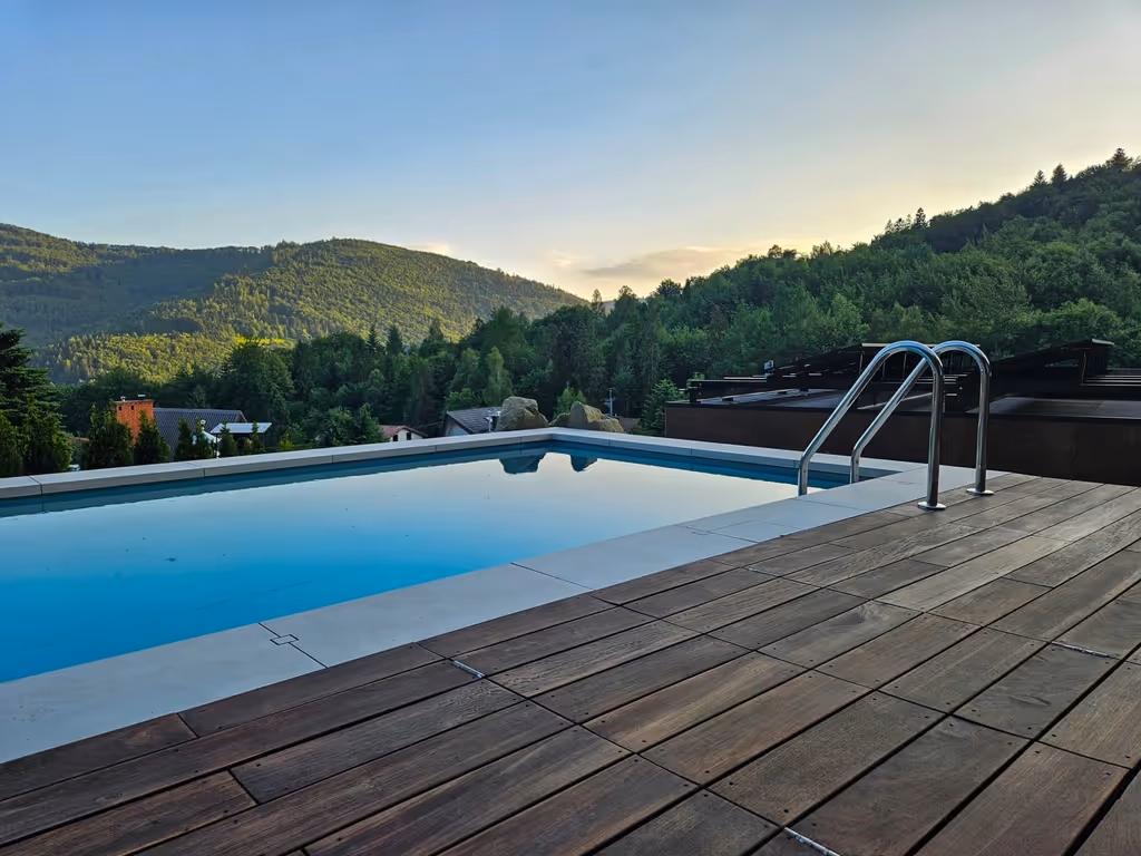 Przed Wami dzieło wybitne: “O obrotach z boczku na boczek pod niebem Beskidu”, którego walory docenią najwytrwalsi hedoniści, którzy w kategorii “relaks” pragną sięgnąć gwiazd. Znacie takich ziomków? To zbierzecie 6 sztuk i ruszajcie do Brennej. Oto kaskadowy dom z basenem, jacuzzi i widokiem na Beskid Śląski, który zawstydzi niejedna syrenę. Dom jest podzielony na dwie części - dzienną i sypialnianą. Myślimy o tym samym? Ranne ptaszki moczą zadki skoro świt, a niewyspani nadrabiają zarwane noce. Nikt nikomu nie przeszkadza! To jeszcze dwa słowa w temacie innych bajerów, mamy tu: amfiteatralne miejsce na ognisko, kino letnie, siłownię plenerową i fantastyczny taras z teleskopem.