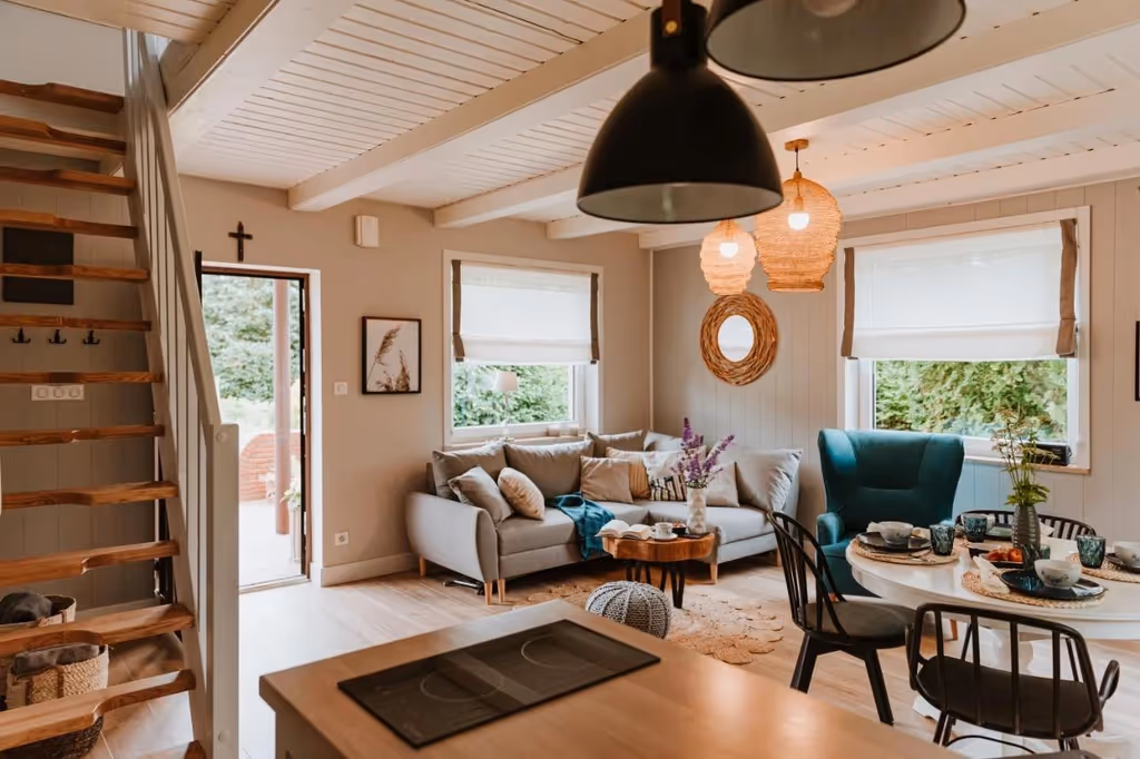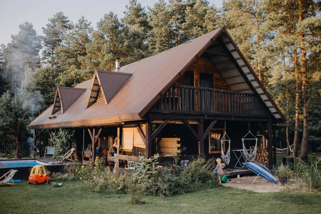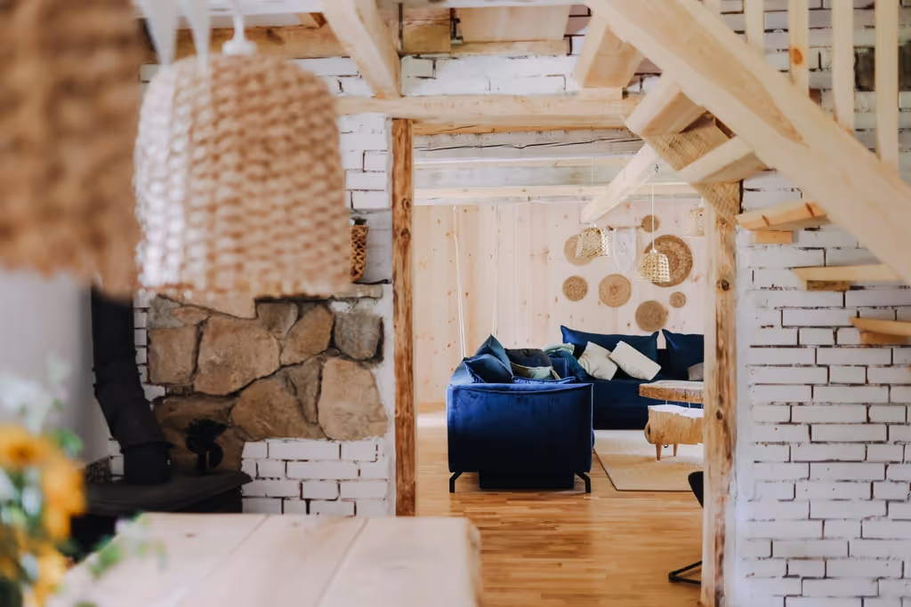 Trochę góralski dom, a trochę wellness retreat w Beskidach. Dwie chaty rocznik 1926 zupgradowane do wymagań współczesnych letników. Pogadalibyśmy o szlakach, bo w końcu to góry, ale nie będziemy ściemniać, że latem to basen kradnie całe show i zwykle kończy się to tak, że 80% czasu spędzacie w wodzie. A jak Wam się znudzi dryfowanie z kubkiem lemoniady, to można się wyżyć artystycznie w łostówkowej pracowni, albo ruszyć na szlak. Idealne na rodzinne wypady, kiedy marzycie żeby schować się przed światem, ale nie aż tak, żeby rezygnować ze zmywarki.
