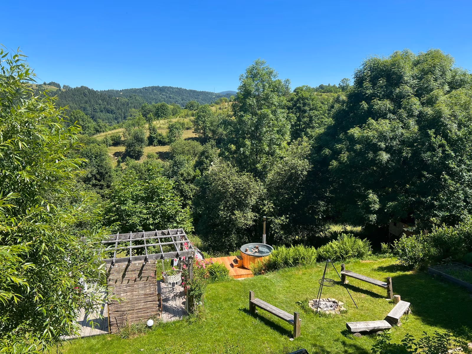 Jesteśmy na pograniczu Beskidu Wyspowego i Gorców, u ujścia potoku Głębieniec do Kamienicy. W zasadzie jest tu kilka rzeczy, które robią na nas wrażenie. Basen plasuje się w pierwszej trójce, bo ma widok, od którego miękną nogi. Treningu do triathlonu w nim nie zrobicie, ale za to po górskiej wspinaczce wchodzi jak marzenie. Z resztą tu widokami sprawa jest złożona, bo gdzie się stopy nie postawi, to trzeba przystanąć i powzdychać. Jest też wanna widokowa, która przychodzi na ratunek, w razie zajętości basenu przez rozhulane towarzystwo. Wystarczy namachać piany, otworzyć książkę, albo odpalić Netflixa (tak, też jest w łazience) i pełnowymiarowy relaks gotowy. Spakujcie 6 człowieków, naręcze bikini, pieski i wygodne buty (jest gdzie dreptać).