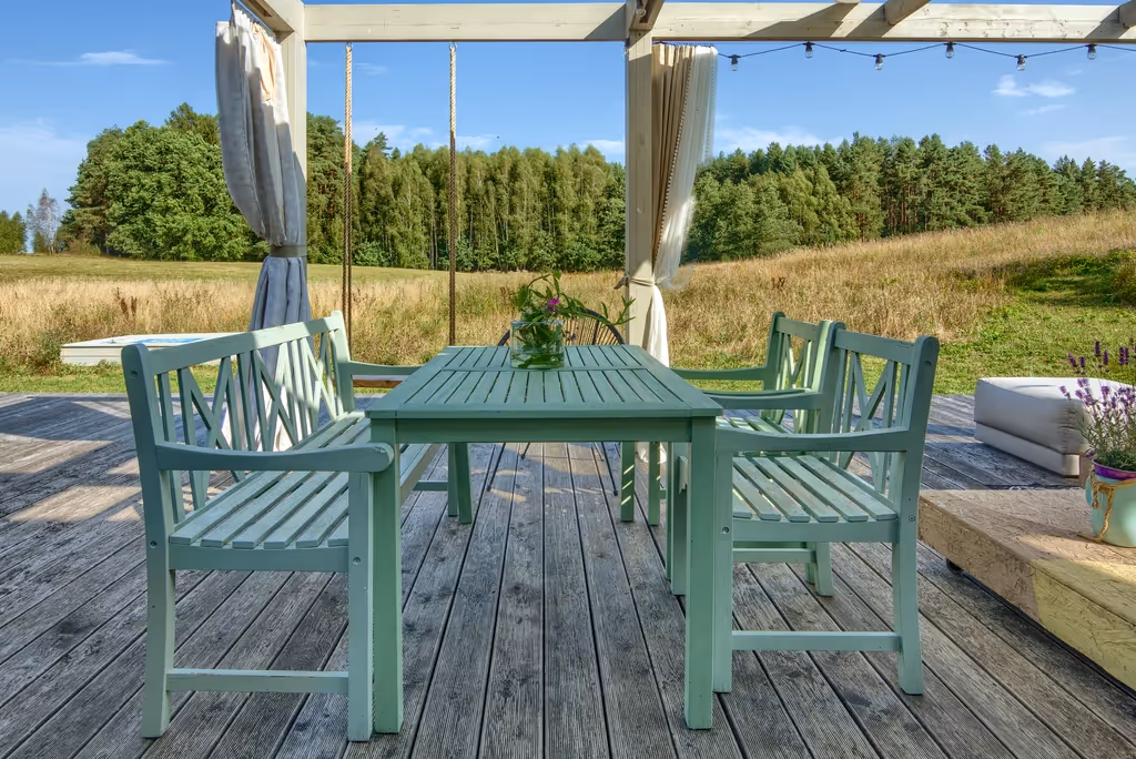 Ważne, bo ogrodzony (dla psiaków). Na końcu niewielkiej wsi Liniewo, pomiędzy dwoma jeziorkami i z lasem za płotem. Zanim ruszycie na plażowanie (Kociewie ma aż 200 jezior), na rowery czy zwiedzanie, czas na poranną kawę z widokiem na warzywnik. Potem można w dwie minuty dojść do jeziora Garczonek, zwiedzić Muzeum Hymnu albo spłynąć Wierzycą. W drodze powrotnej zrobicie zakupy we wsi: pyszne pieczywo z małej piekarni, miód od pszczelarza, wędliny i przetwory u Pani Iwony, jajka u najbliższego sąsiada. Tak się tu żyje. Miejsce raczej nie dla najmłodszych bąbelków, ale już zerówkowicze i wyżej będą miały co robić.