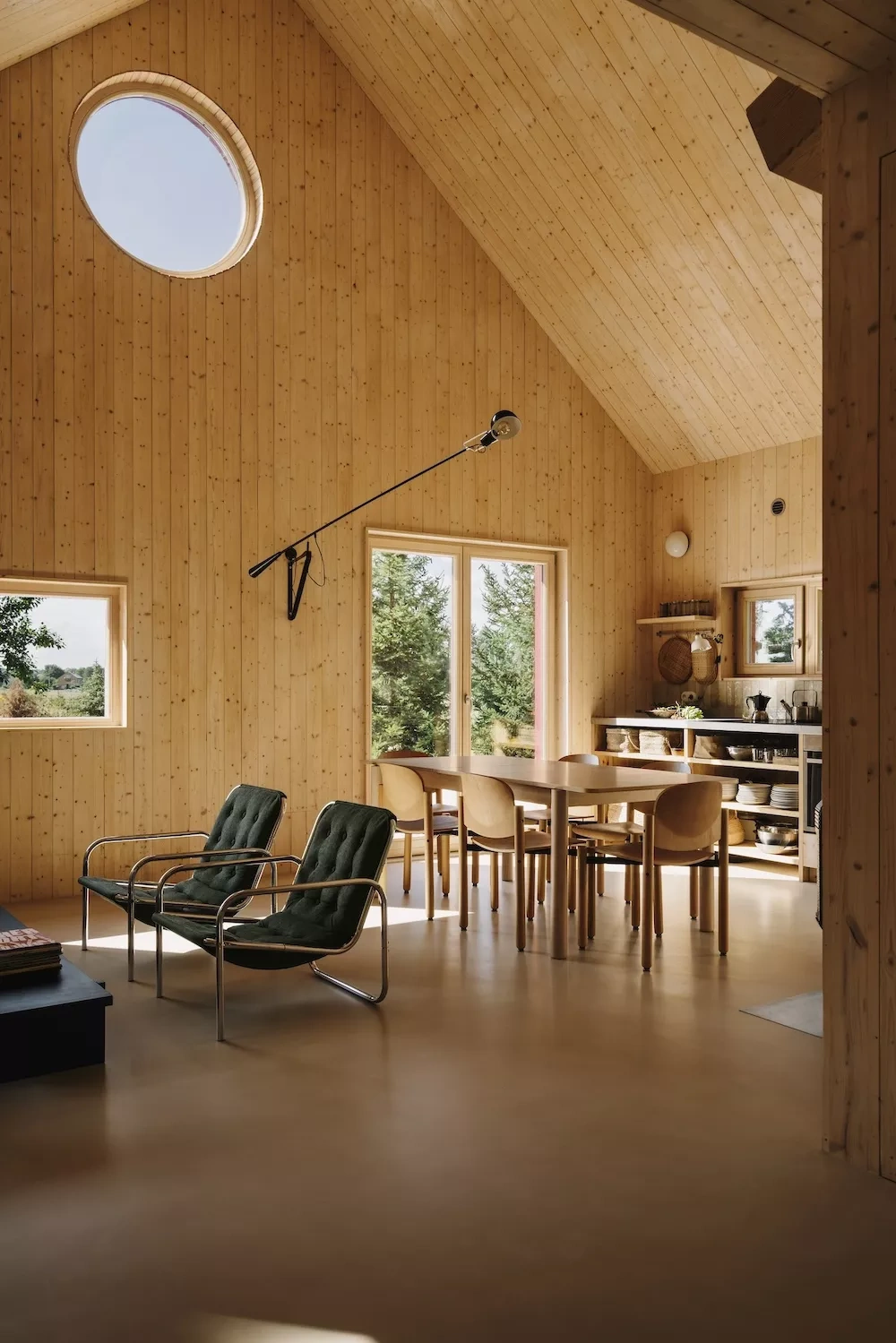 Na podlaskim uboczu, w Ciwoniukach, czeka dom, który wygląda jak stworzony pod seanse. Przez 6,5-metrowe przeszklenie w salonie gra tu własne kino: las w roli głównej, a efekty specjalne zapewnia światło przefiltrowane przez gałęzie drzew. Klimat podkręca kaflowy piec oraz antresola z kącikiem czytelniczym. Taras kusi opcją powolnego rozprawiania się z pofilmowym „kacem”, a gdy zapadnie noc, zamiast napisów końcowych macie gwiazdy w jakości 4K. A jeśli potrzebujecie plenerów do kolejnego odcinka Waszej własnej historii, to za progiem czekają Narew, Zalew Siemianówka i dzika Puszcza Białowieska.