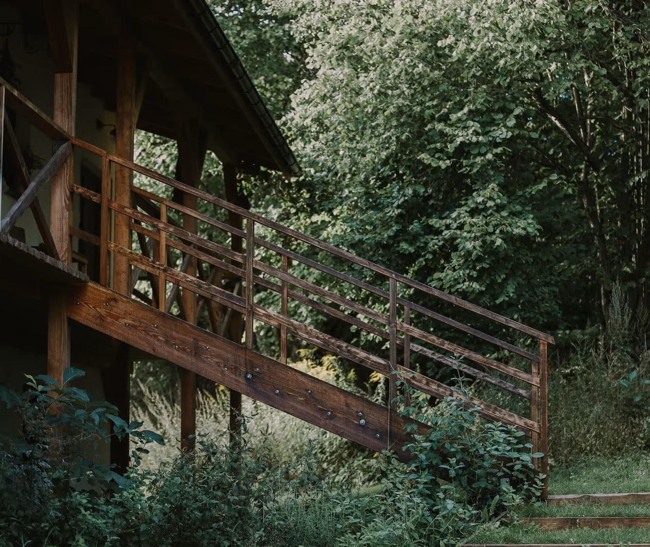 Słyszeliście o trendzie na ecospacing? To architektura zgrana z przyrodą i krajobrazem, która polega na wykorzystaniu naturalnych materiałów występujących w danym miejscu (np. drewno, kamień). W efekcie powstają budynki, które harmonijnie wtapiają się w okoliczną przestrzeń. W Dalej Nie Idę znajdziecie dwa domy zbudowane zgodnie z tą ideą. W starszym domu jest niskoemisyjny piec kominkowy, w obu zainstalowano fotowoltaikę, a Gospodarze dodatkowo zbierają deszczówkę oraz uprawiają ogród permakulturowy.