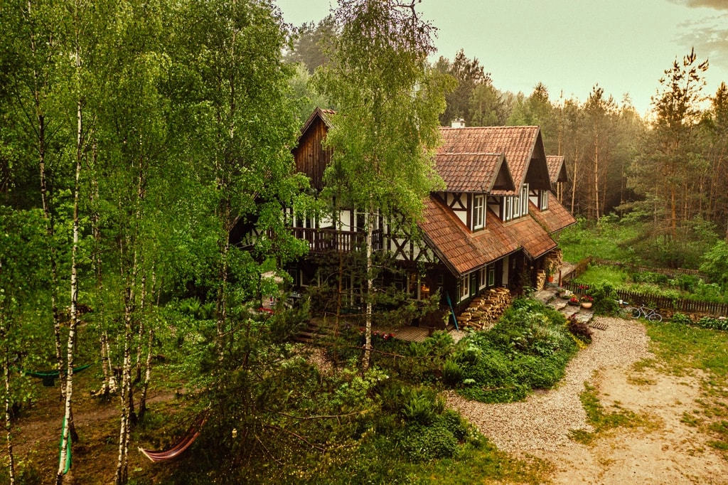 Jeśli chcecie połączenie: klimatyczny dom w lesie, blisko jezioro (a nawet 80 jezior w promieniu 30 km), a do tego konie i opcja hipoterapii – to jest Wasz adres. Gospodyni Danka to slowhopowa legenda, którą uwielbiają Goście (nie bez powodu to miejsce ma 97 opinii na 5*). Do tego śniadania na życzenie, Internet śmiga (więc można na pracę zdalną), no i pieski mile widziane. Aaaa, no i oczywiście macie kominek do dyspozycji.