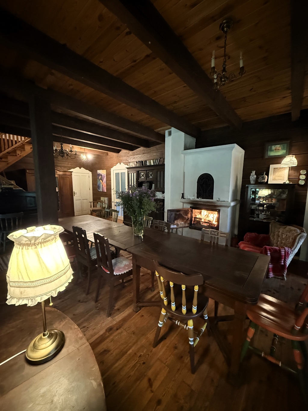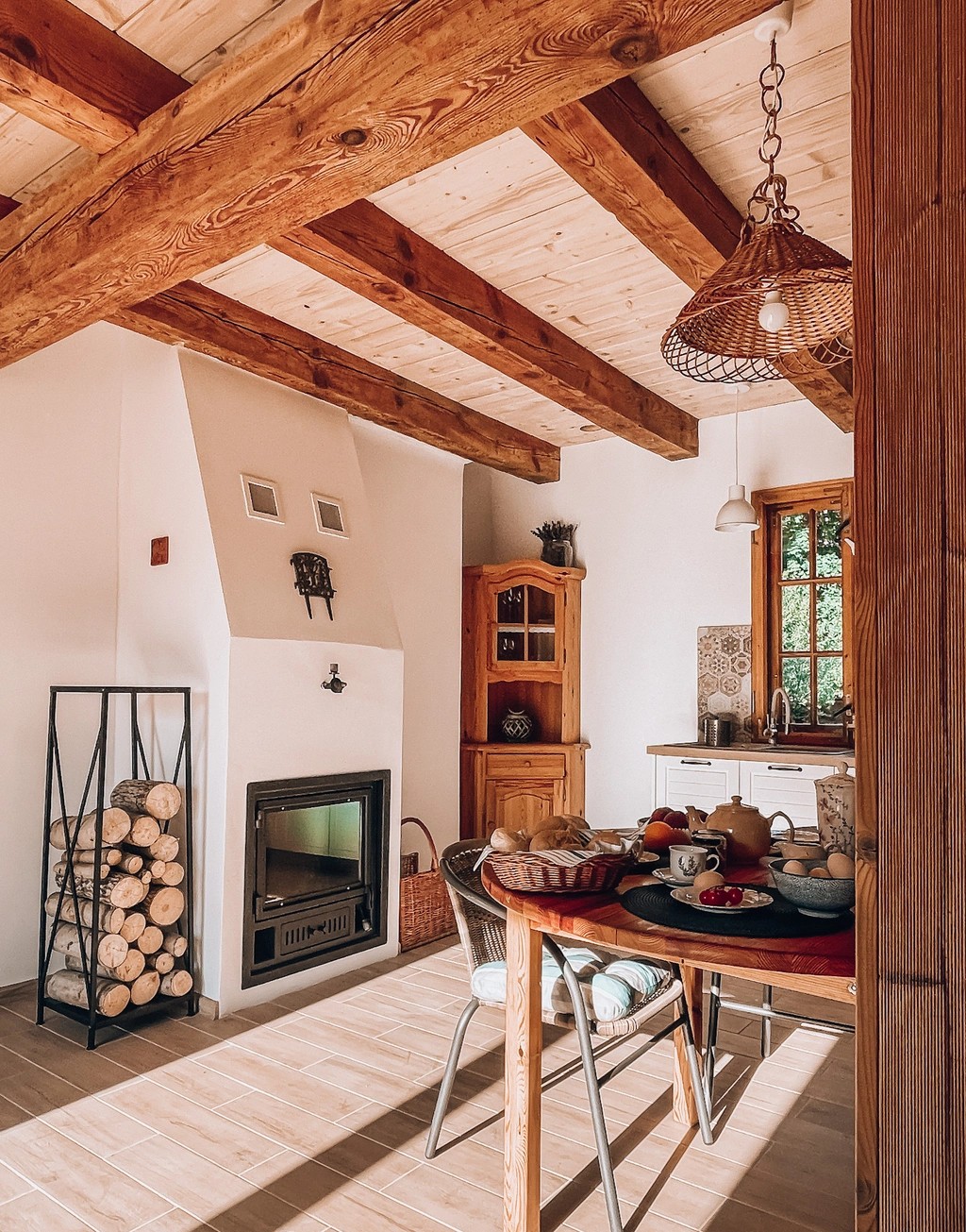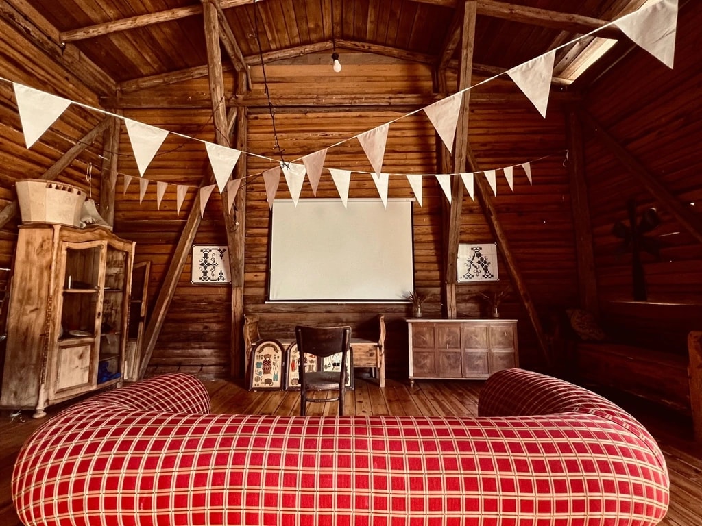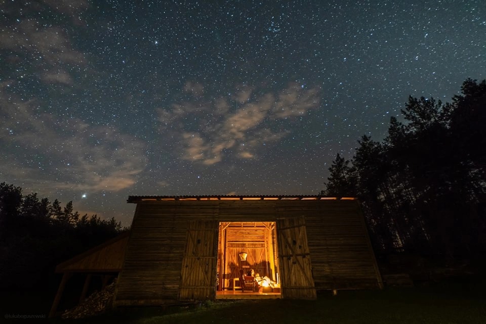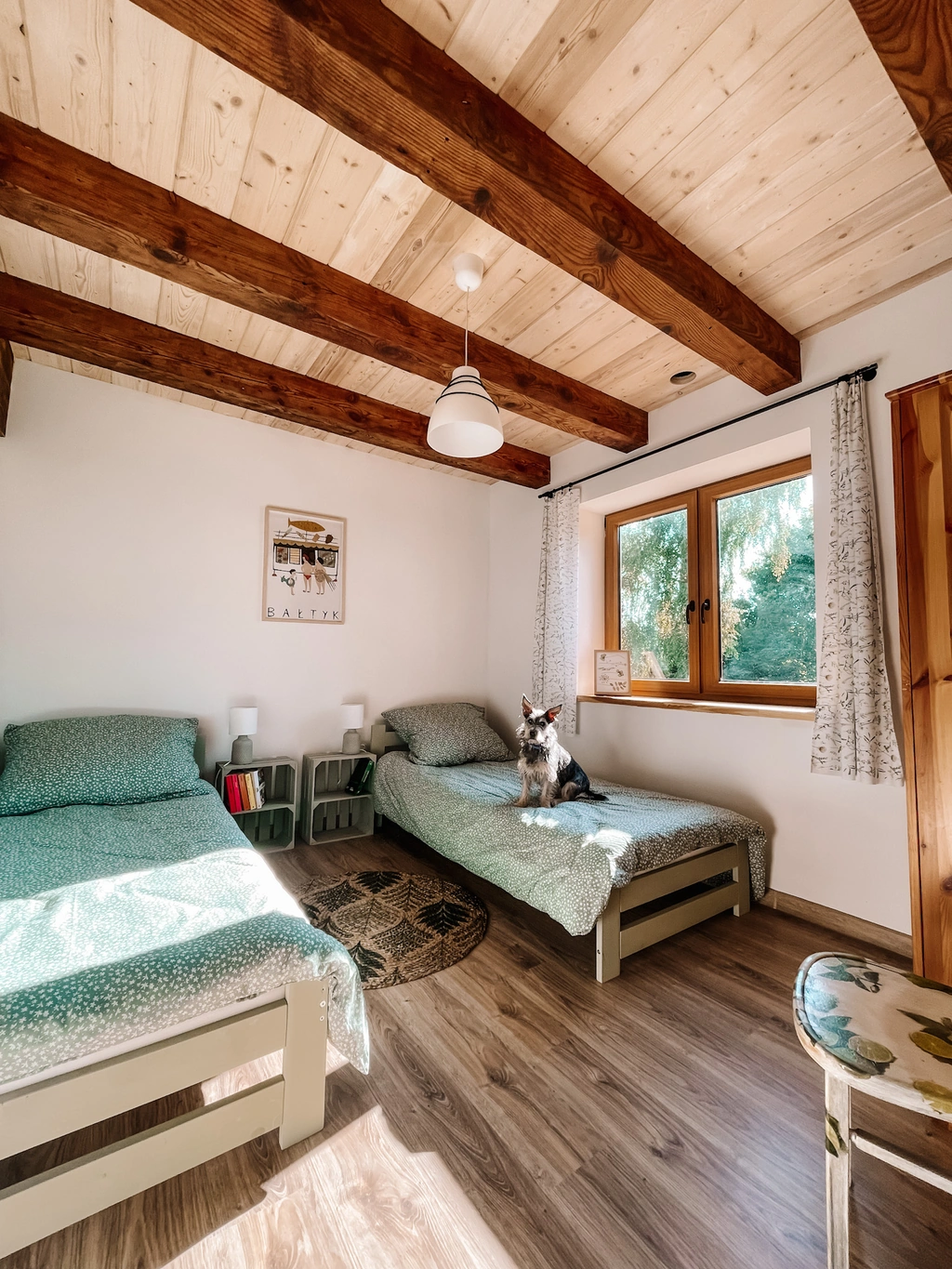 Gdybyście pytali nas o zdanie, to tu jest tyle przytulności i opcji na slow aktywności, że można by wiadrami wynosić. I jak napisała jedna Gościni, to domek dla entuzjastów_ek sielsko-wiejskich klimatów. A to podłoga zaskrzypi, a to nietoperz pozdrowi nad ranem z okolic poddasza. I to jest właśnie fantastyczne, autentyczne doświadczenie życia pod lasem, w zespoleniu z otaczającą przyrodą. Dom ma piękny kominek w centrum salonu i podobno wspaniałe posiłki na życzenie, przygotowywane troskliwą ręką Gospodarza. Przyjeżdżajcie po slow life bez filtra.