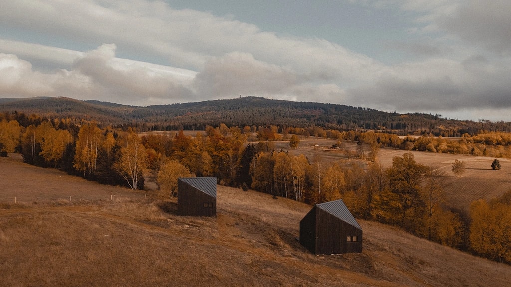 „Nie znaleźliśmy jak do tej pory tak odludnego miejsca, ale w cudownym znaczeniu tego słowa. Spędziliśmy (...) weekend w przepięknej, magicznej aurze zimowego i górskiego krajobrazu, który mogliśmy podziwiać z salonu w blasku kominka.” – pisze Gościni Paulina. I to jest ten czar, który u nas z automatu wywołuje myśl: „Chcę tam być”. Na samym skraju Dolnego Śląska, na jakiś 700 m.n.p.m., stoją trzy minimalistyczne domki do terapii po przedawkowaniu cywilizacji. Piękne wnętrza, kompletne wyposażenie i przyroda na wyciągnięcie ręki.
