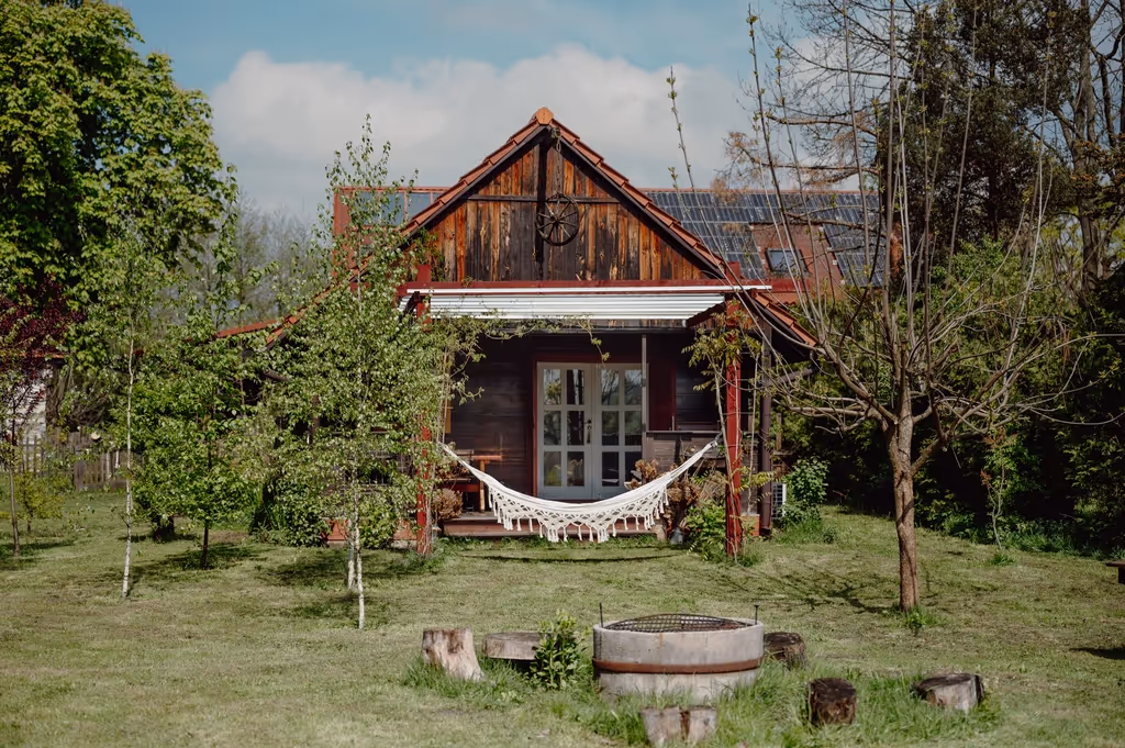 Wyobraźcie sobie miejsce, gdzie nie ma sąsiada z kosiarką, bo tu króluje bezsąsiedzie, a w okolicy przyroda, szlaki rowerowe i wody Jeziora Rożnowskiego. Do pakietu regeneracyjnego dorzucamy taras, las i ciszę tak gęstą, że aż słychać, jak się Wam obniża ciśnienie tętnicze i poziom kortyzolu. Nie ma hałasu, ani głupich pytań. Jesteście tylko Wy, natura i ten moment, w którym mówicie szeptem: „Tak, to jest życie”. Wnętrza przygotowane są z myślą o relaksie, ale w stylu „mniej znaczy więcej” – ot, prostota, która koi. To miejsce jest idealne na ucieczkę z miasta, detoks od internetu albo po prostu chwilę, w której macie ochotę legalnie się zaszyć i nikomu nic nie tłumaczyć.