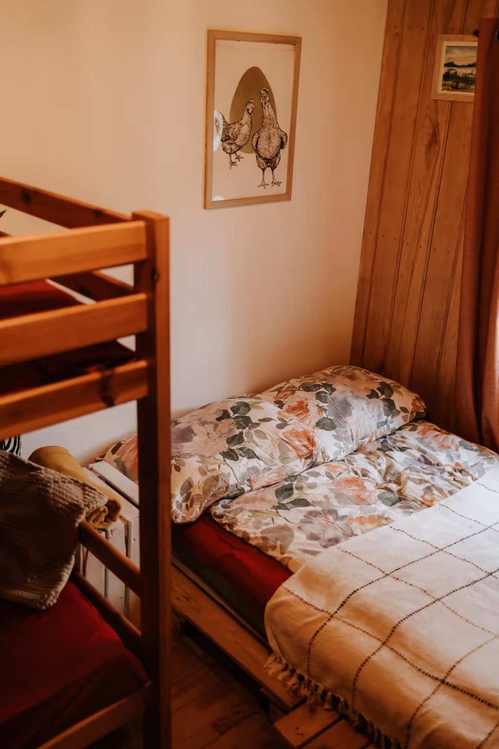 Tu kiedyś mieszkały krowy, a dziś – tymczasowo możecie osiedlić się Wy, Wasze ulubione lektury i święty spokój. Goście mówią, że tu spektakle natury zastępują seriale, a jedynym „hałasem” są żaby dające koncerty przy stawie, no i kury zaglądające czasem na taras.Co tu można? Przede wszystkim kreatywnie się nudzić, albo po prostu nie robić nic i wejść w tryb misia koala – jeść, spać i NIE SPIESZYĆ SIĘ. W środku wygodnie jak w domu: klimatyzacja, zmywarka i porządek jak przed wizytą teściowej. A dookoła – cisza, śpiew ptaków i błogi brak cywilizacji. Czyli wieś w wersji premium.