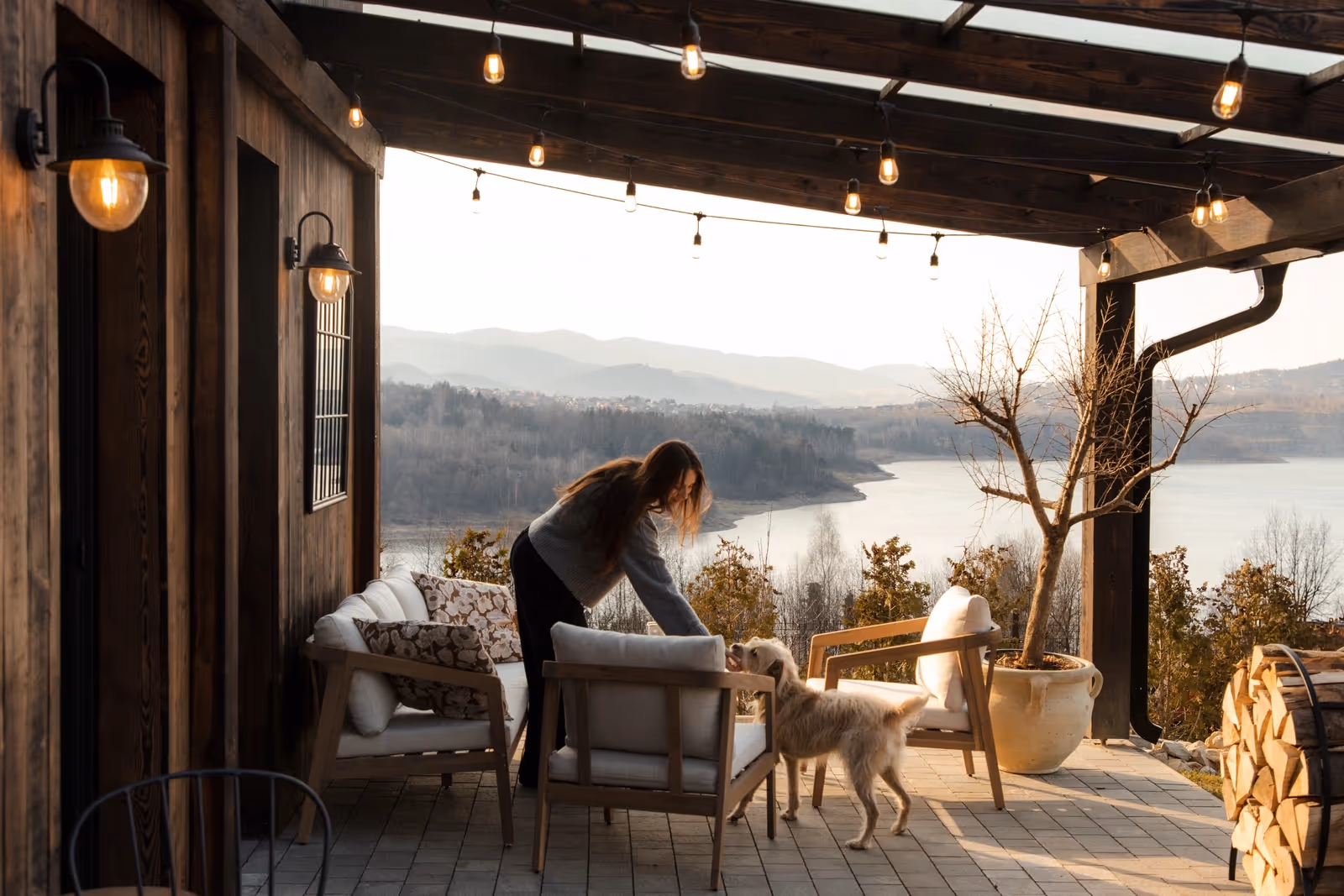 Otwieramy zestawienie miejscem, który ma chyba wszystko. Po pierwsze: dwa domy dopieszczone są tak, że można by w nich kręcić reklamy szczęścia. Po drugie: widok na Jezioro Mucharskie, który załatwia za Was wszystkie mindfulnessy i inne slow life’y. Po trzecie i wcale nie ostatnie: każdy dom ma prywatną balię (na wieczorne plumkanie pod gwiazdami), dwie łazienki, dwie sypialnie i udogodnienia dla psiego towarzysza wakacji. Goście wracają tu po ciszę, styl, święty spokój i poranną kawę z widokiem, który powinien mieć własne konto na Instagramie. A jakby tego było mało – do Lanckorony dojdziesz w kapciach.
