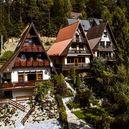 Kiedy słyszymy Ustroń, pod mrugawkami migoczą nam modernistyczne piramidy porozrzucane na zboczu Równicy. Jeśli tę lekcję architektury musicie dopiero odrobić, to mamy tu dobrą okazję i jeszcze lepsze miejsce: dwa bliźniacze domki, pod górskim szczytem, tuż obok lasu. Spod samego domu wyruszycie na szczyt Równicy (884 m n.p.m.) gdzie czekać na Was będzie cała paleta ścieżek – do wyboru do koloru. W nagrodę za wyrobione kroki – sesja w saunie i balii. Moczykijów pewnie ucieszy fakt, że w przydomowym stawie jest szansa złowić obiad, a potem ugrillować zdobycz w Kurnej Chacie. Jak już się Wam przewentylują mózgi i zapełnią brzuszki, zaplanujcie wycieczkę po Ustroniu-Zawodziu szlakiem “śląskich piramid”.