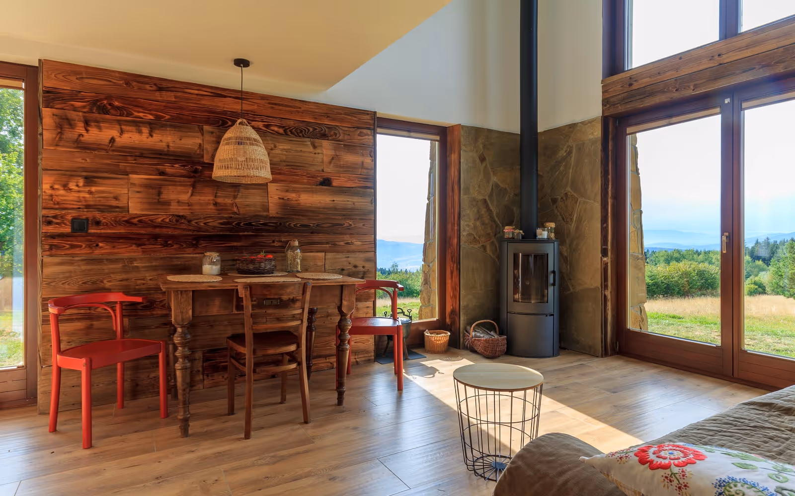 Pod Wysokim Niebem pojawiło się na Slowhopie na finiszu tego zestawienia. Już mieliśmy wciskać enter, kiedy nagle Zosia zrywa się z fotela i krzyczy: stop! Jeszcze nie wciskajcie! To wszystko przez Kasię i Marcina, a raczej – dzięki nim. Zosia mówi, że to majstersztyk zacięcia ruinersowego. Nie dość, że wzięli na klatę ratowanie stuletniej chałupy, to jeszcze postanowili zrobić to zero waste. I jak sobie teraz o tym myślimy, to chyba cud sprawił, że ogarnęli to w 3 lata. Każdy mebelek opowiada jakąś historię: a to sofa ze starego łóżka, a to kuchnia, która skrywa imponujący przegląd termomixów na emeryturze. To jeszcze tylko na koniec szepniemy, że wystarczą 2 minuty spacerkiem, żeby sobie powzdychać do niesamowitej panoramy Tatr.