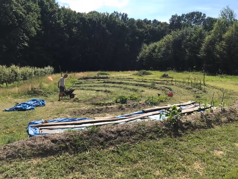 Idziemy o zakład, że większość współczesnych dzieciaków nie ma pojęcia, że ogórki mają kolce. Nie, żebyśmy mieli komuś za złe, takie czasy. Skąd niby mają wiedzieć? Tym bardziej się jaramy, kiedy wpadają do nas tacy Gospodarze jak Ola i Mike – z misją i z zajawką do stworzenia lasu żywności. Na pagórkach Beskidu założyli ogród zgodny z zasadami permakultury – sadzą i sieją rośliny typowe dla danego ekosystemu, aby zintegrować je do produkcji żywności. Ich najbardziej szalony pomysł to roślinny amfiteatr, w którym grządki tworzą charakterystyczne półkola. Mają się w nim odbywać koncerty jazzowe (bo Mike jest nie tylko farmerem, ale także muzykiem). Czy będzie tam grana oda do ogórka? Być może. W tych okolicznościach przyrody, wokół grządek i drzew owocowych postawili tiny house z czerwonym kapeluszem, a jego centralną częścią jest kuchnia. Gotowanie odbywa się z widokiem na ujęte w ramkę wzniesienia Beskidu Wyspowego. Można rwać z krzaczka i wrzucać prosto na ruszt. No bomba.