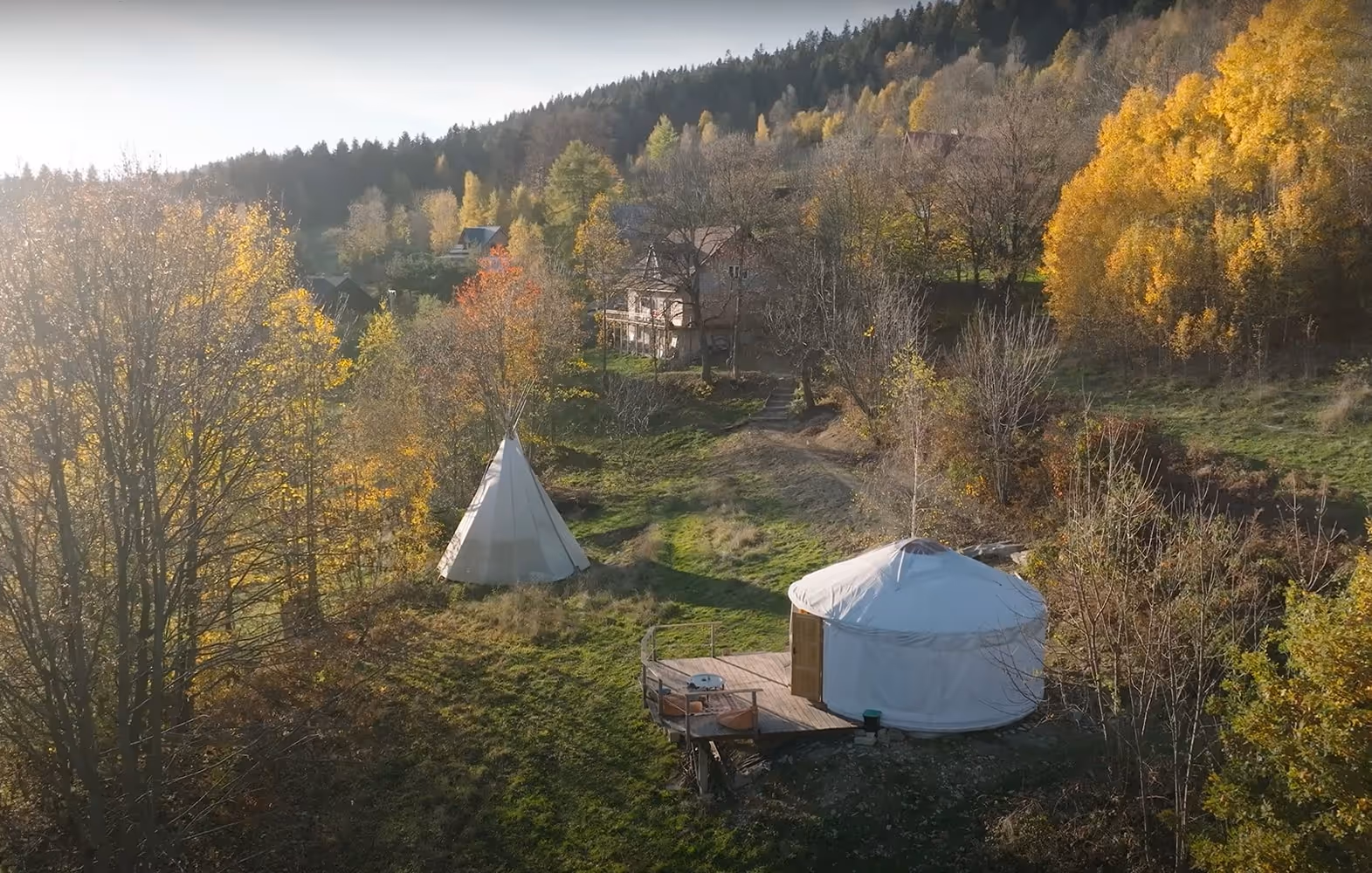 Jurta pasuje do Beskidu Wyspowego jak pączek do marmolady. Siada, aż miło. Więc jest i ona – Jurta Jutra od Wojtka i Oleny, z solidnym tarasem do obserwacji pagórków, wystających ponad beskidzkie mgły. W środku wszelkie nowoczesne udogodnienia, standard jak w wysmakowanej kawalerce, ale okoliczności – znacznie przyjemniejsze. Podobają nam się odręczne malunki spod ręki Oleny i ręcznie robiona ceramika. Wam spodoba się też fakt, że w jurcie można nocować nawet srogą zimą. Były testy, wyszły pomyślnie. Zanim wyruszycie czerwonym szlakiem do Obserwatorium Astronomicznego na Lubomirze (przebiega tuż obok), zamówcie u Gospodarzy kosz lokalnej szamki. Jest też deser – obok jurty stoi wielkie tipi, w którym można rozpalić ognicho i poczuć się jak prawdziwy indianin. Ponoć siła jego przyciągania działa w równym stopniu na dorosłych i na dzieci.