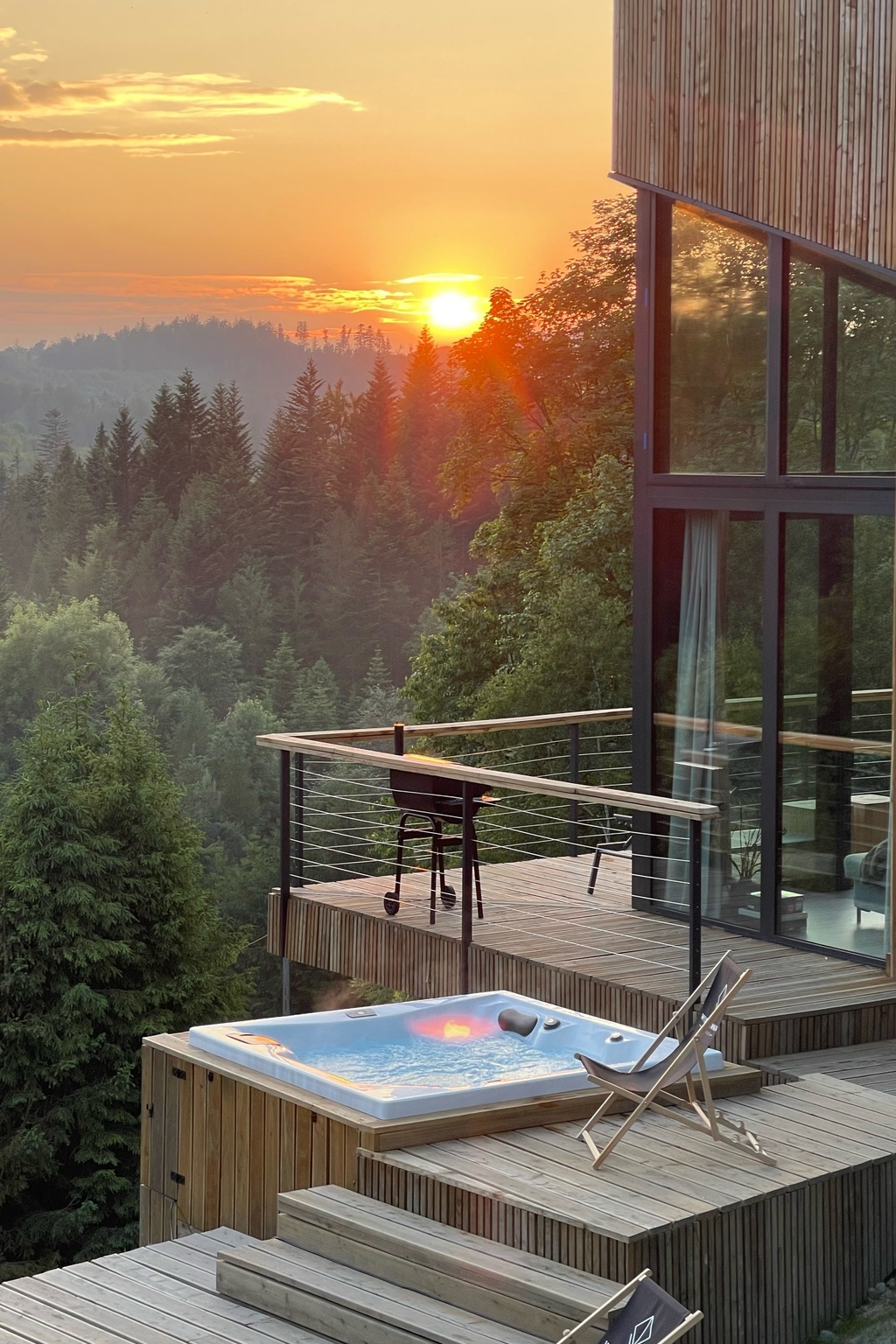 'Ostatnie dwie doby spędziliśmy w miejscu, które koi zmysły i przywraca równowagę duszy. Cisza przerywana jedynie śpiewem ptaków, zapierające dech w piersiach widoki i ta niezwykła lekkość bycia, której tak często brakuje na co dzień. No i jacuzzi! Idealne na mały „gateaway” od zgiełku codzienności – z całego serca polecamy każdemu, kto szuka chwili oddechu. ❤️'.
