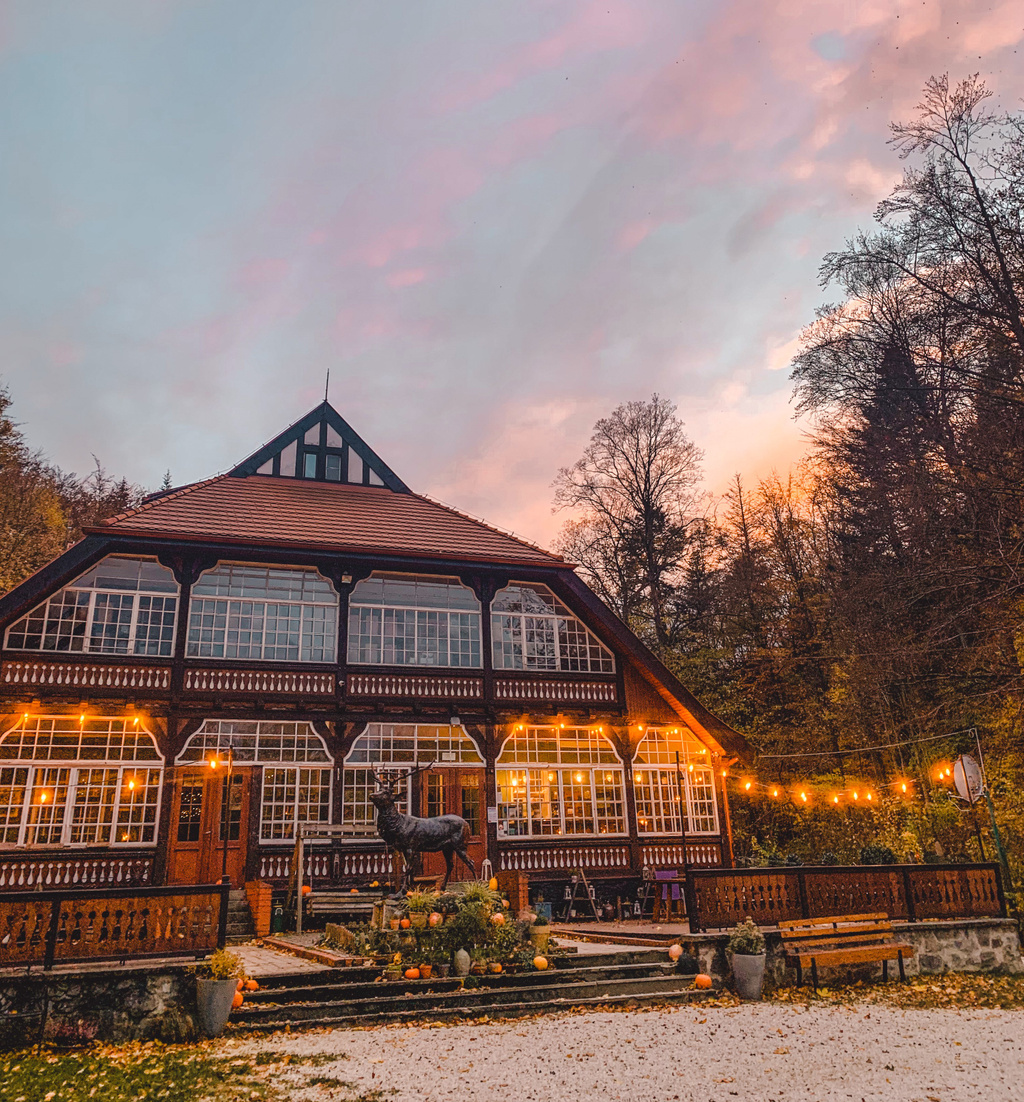 Górski pensjonat z destylatem jesiennego hygge. Idealny na wypad solo lub w parze, żeby wyrwać się z miasta. Śniadanka w cenie, a za balię i saunę warto dopłacić.