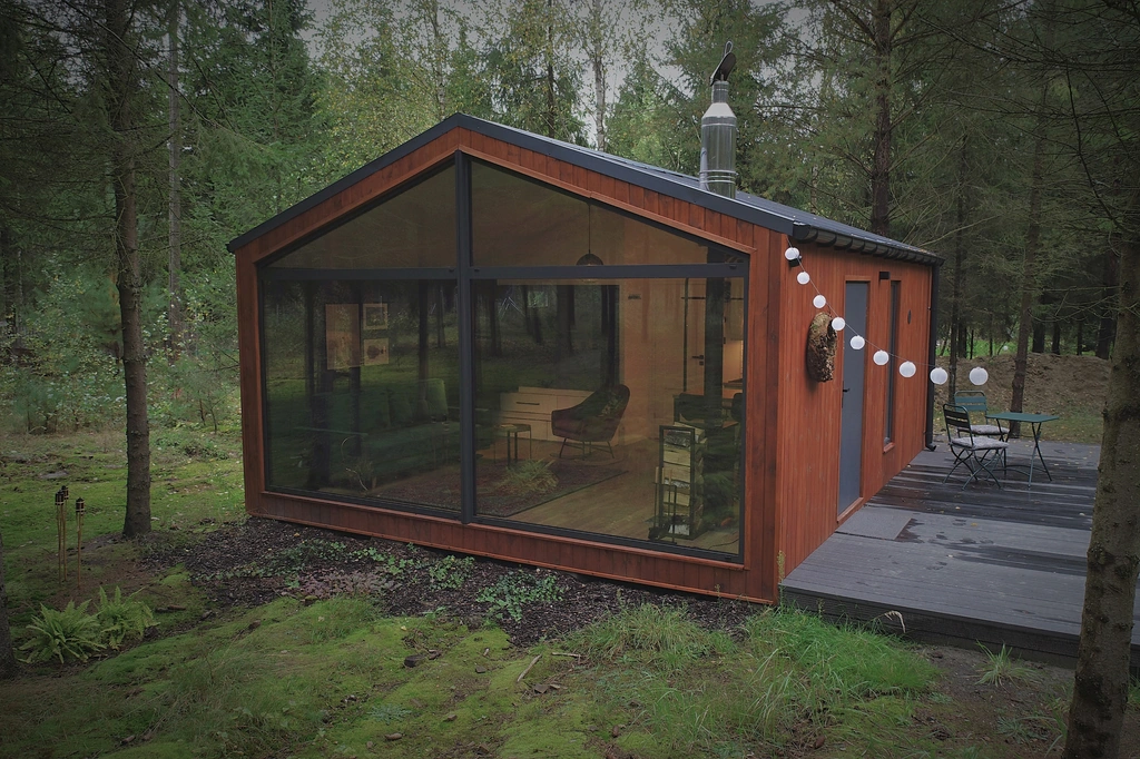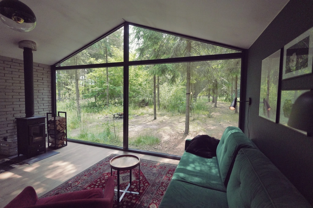 Dwa małe domki w lesie. Idealne na reset od bodźców, w sam raz na cyfrowe wagary. Dla par lub na wyjazd z własnymi myślami. Kominek i panoramiczne okno robią robotę.