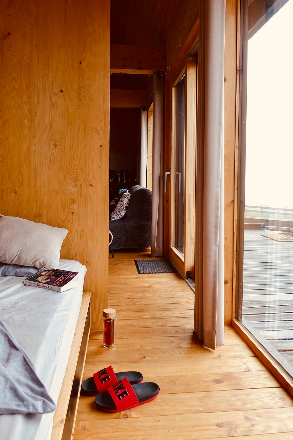 Trzy domki,czekają na swoich 6 ludzi, a w roli głównej atrakcji występuje bezwstydnie piękny widok na Beskid Śląski z tarasu. Każdy z nich ma swoje jacuzzi i saunę, więc jesienne chłody są tu mile widziane, bo właśnie wtedy zaczyna się prawdziwe widowisko z mgieł. Po dniu spędzonym na górskich szlakach albo na trasie biegówek (oddalonej o zaledwie 50 metrów) można rozsiąść się w sekretnym kąciku z widokiem albo zanurzyć w bąbelkach i czekać na zachód słońca. A jeśli jesień postanowi ubrać się w deszczowe chmury – odpalacie gogle VR i przenosicie się w zupełnie inne światy.