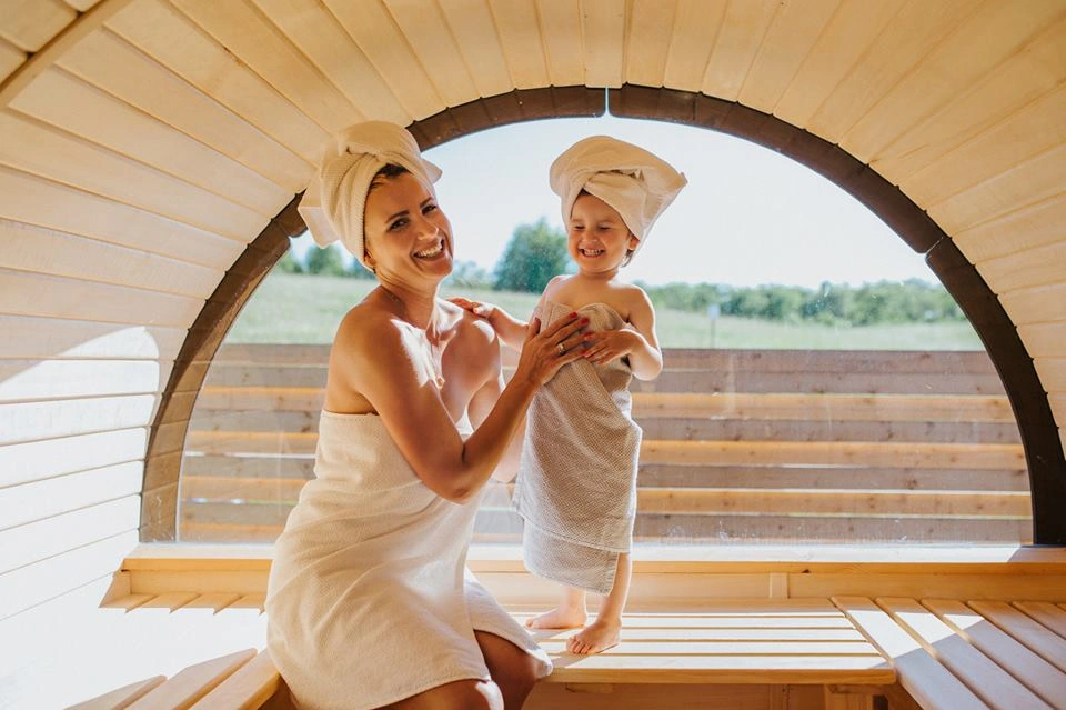 Wskakujcie w stroje kąpielowe i ruszajcie nad Jezioro Raduńskie. Bo zaledwie 5 minut od niego zameldujecie się w dwóch domkach z prywatnym spa: balią z jacuzzi na tarasie, rozgrzewającą sauną i beczką z zimną wodą na koniec sesji. A że od ciut większej wody dzieli Was rzut aerodynamicznym materacem, łapcie za książkę i koszyk z przekąskami. Tu można pływać, wiosłować, łowić ryby, a potem na odwrót: łowić ryby, wiosłować i pływać. I byczyć się na pomoście, albo wrócić do baliowych bąbelków z widokiem na las. Jest dziko, cicho i bardzo wodniacko – idealnie na lato. Zamiast tłumów i smażonej ryby w styropianie, tu są: szum drzew, święty spokój i wieczorne saunowanie pod gwiazdami.