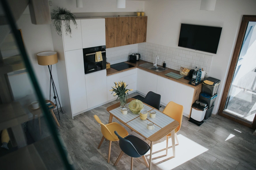 Tu od progu można poczuć morską bryzę i usłyszeć szum fal. Sześć przestronnych, dwupoziomowych apartamentów (ok. 60 m² każdy) kuszą minimalistycznym designem i naturalnymi materiałami – idealne, żeby uciec od zgiełku i poczuć kaszubsko-bałtycki vibe. Co ważne – miejsce jest przyjazne alergikom (futerka zostają w domu pod czułą opieką rodziny i przyjaciół). No i bardzo dzieciolubne! Dzieciaki mają tu dedykowane pokoje z zabawkami, za które rodzice chętnie wznoszą toasty filiżanką kawy w towarzystwie ulubionej lektury. W opiniach doceniane są także leniwe poranki na tarasie, spacery po wydmach, zbieranie muszli i głęboki oddech nadmorskim powietrzem. Dla aktywnych plaża będzie naturalnym centrum wodnych przyjemności: kąpieli w morzu, skakania materacem na fale, biegów po piasku albo zwykłego pluskania się do zachodu słońca. Komu taki scenariusz na wypoczynek?