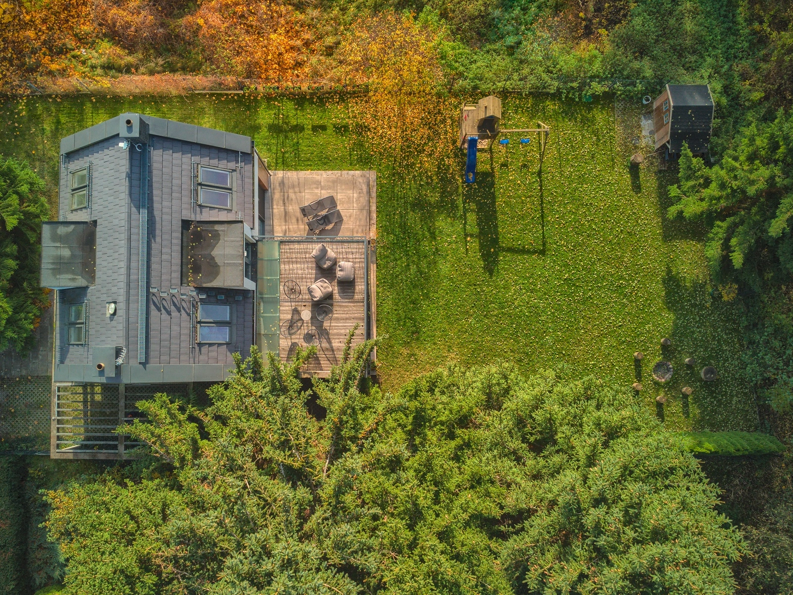 A tu dom schowany na wzgórzu, gdzieś pomiędzy drzewami i leniwie płynacym potokiem. Nadmiar zieleni często powoduje niespodziewaną eksplozję endorfin. To takie małe Bullerbyn gdzie można turlać się po trawie, wspinać po drzewach i pedałować leśnymi ścieżkami. Uszanowanko dla gospodarzy za bajeczne wnętrza, w których można wyłączyć wszelkie receptory, zapomnieć o bożym świecie i po prostu odpocząć.