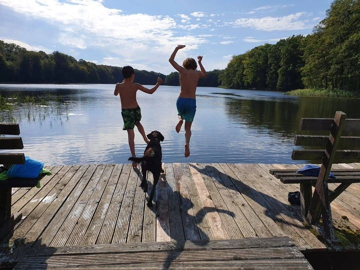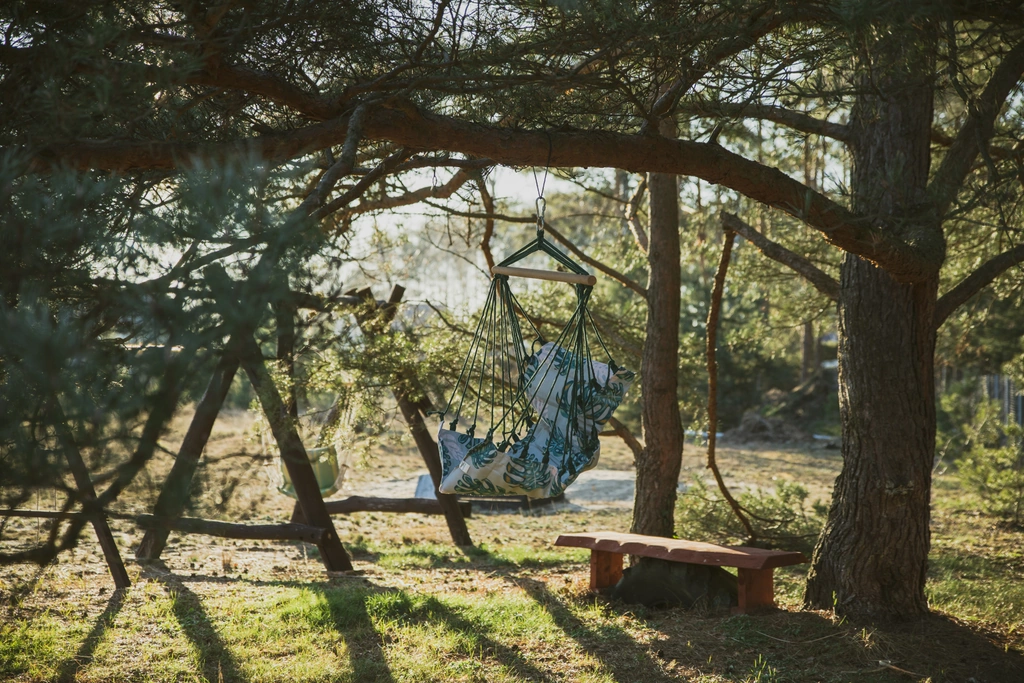 Tu się nie organizuje animacji czasu wolnego, bo największą atrakcją jest właśnie święty spokój – najlepiej w hamaku, pod okazałym dębem. Jeśli jednak złapie Was sportowa żyłka, to możecie wskoczyć w siodło (entuzjastki_ści koni będą w siódmym niebie), wziąć rower albo po prostu dać się wieźć bryczką przez dzikie łąki Pojezierza Drawskiego. Aaaa, no i 100 m od domu jest prywatne jezioro z pomostami, kajakami i sauną. Sprzęt sportowy, jazda konna i sauna są dodatkowo płatne, ale Goście jednoznacznie piszą w opiniach, że warto.