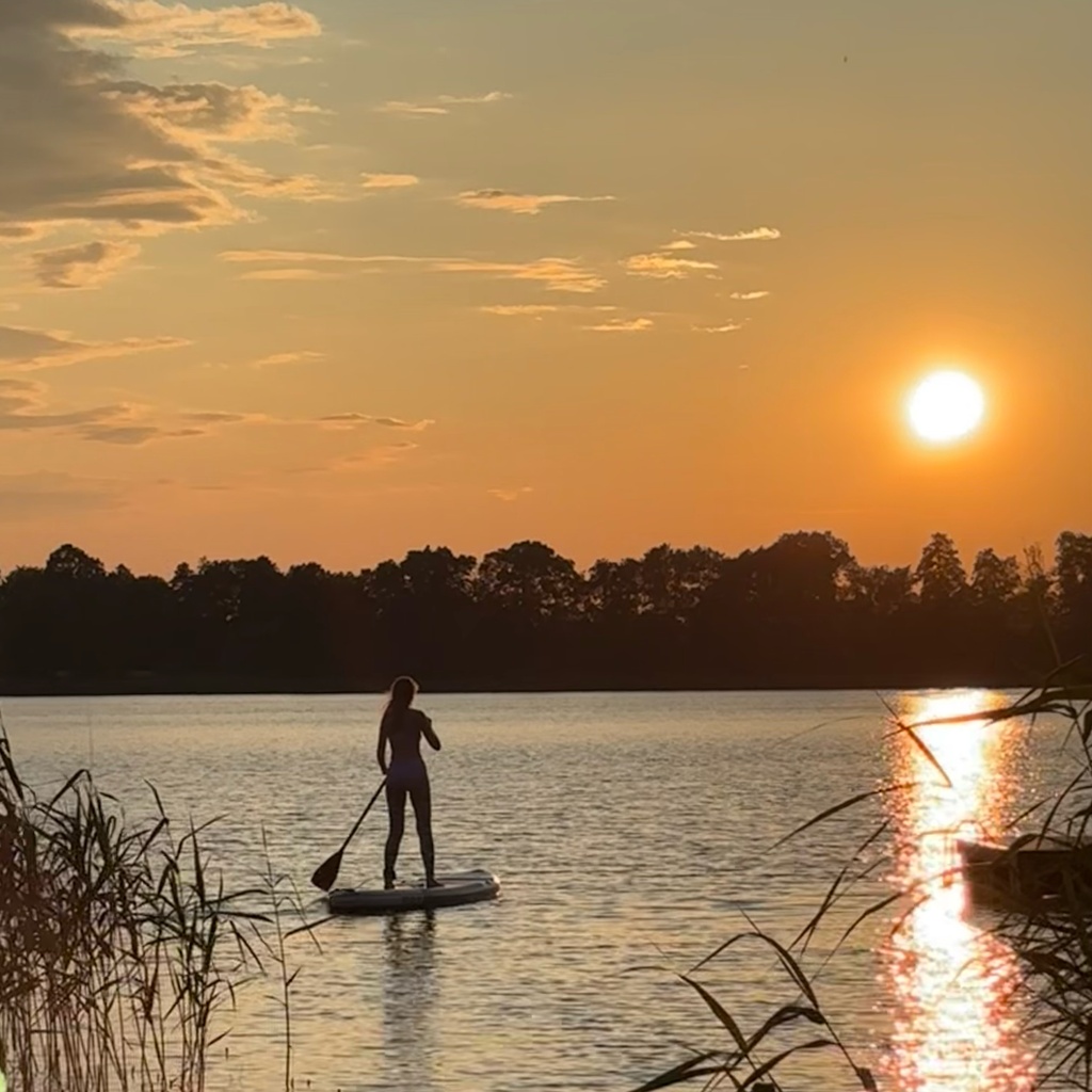 Tegoroczne wakacje spędziłam w krainie leniwych śniadań, gdzie naleśniki jedzą się z widokiem na jezioro, a czas płynie wolniej niż ja na SUP-ie. Tutaj można zapomnieć, który mamy dzień tygodnia, ale pamięta się, gdzie leży krzyżówka i kawa. Czas spędzaliśmy głównie na pływającym pomoście, grzebiąc nogą w wodzie. A gdy padało? Graliśmy w Monopoly, które jak wiadomo w standardowych warunkach potrafi zniszczyć rodzinę. Na szczęście nie tutaj. Tu nawet kłótnia o hotel na Belwederskiej brzmiała jakoś łagodniej. Wieczory były od ogniska i gapienia się w niebo ujawniające kolejne gwiazdozbiory. I od myśli, że człowiek naprawdę nie potrzebuje wiele: trochę ciepła, trochę wody, trochę kart i ludzi, z którymi można skakać i robić fikołki. To były wakacje z gatunku „A pamiętasz, jak...?”, do których we wspomnieniach będziemy wracać jeszcze nie raz.