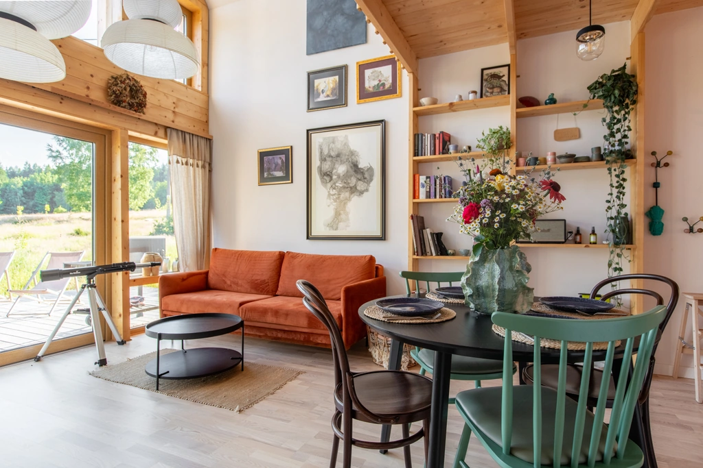 Możecie mi wmawiać, że w tym przypadku jestem stronnicza, bo Gospodyni tego miejsca od roku należy do slowhopowej kadry, ale tutaj historia była taka: najpierw polubiłam się z Daczą, a dopiero potem miałam okazję polubić się z Pauliną. W obu przypadkach: od razu kliknęło! A było tak: do Daczy przyjechaliśmy na romantico wyjazd z ambitnym spisem planów krajoznawczych. Skończyło się na tym, że cały pobyt spędziliśmy a to w środku, bycząc się na 1001 sposobów, a to jadając obiadki na tarasie, a to szalejąc na łące przed domem. I raczej niewiele zmieni się przy kolejnych wizytach, bo tutaj: 1. Esteci_tki mają podprogową terapię mnóstwem pięknych elementów, codziennie zachwycając się czymś nowym. 2. Osoby spragnione analogowego życia odpłyną przy książkach, kartach do leśnych kąpieli i grach planszowych. 3. Aktywni pograją w badmintona, będą hasać po okolicznych ścieżkach, śledząc poczynania mikrokosmosu, albo nauczą się rozróżniać gwiazdozbiory przez teleskop. Tu prenumerujecie błogostan i proste przyjemności.