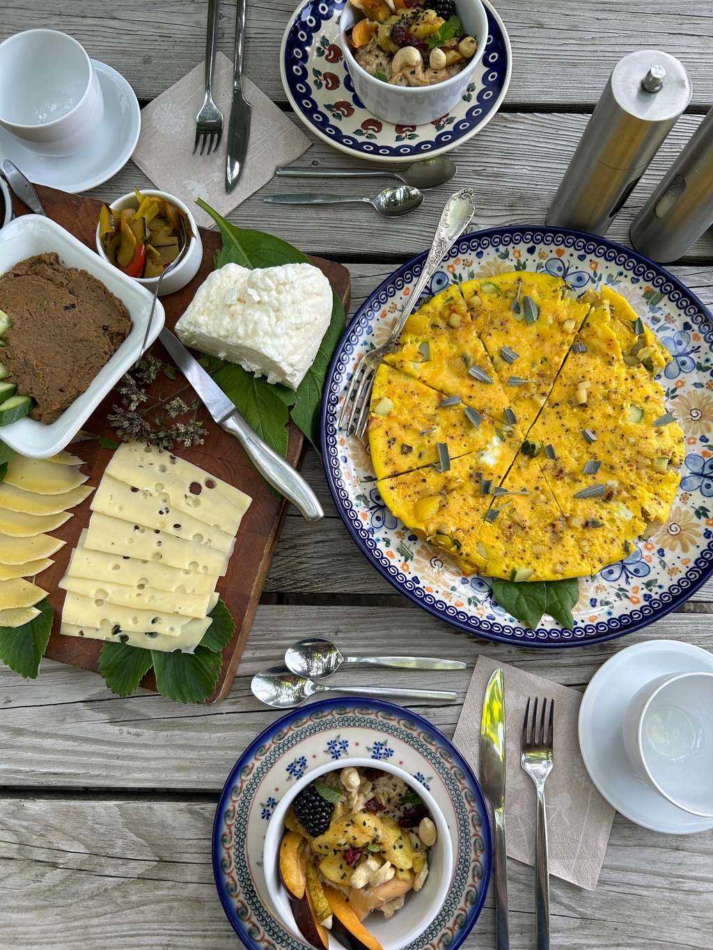 Przed nami było tu już kilka osób z zespołu i gospodarzy Slowhopa. Wszyscy zachwyceni, a na dodatek Marcin był z Elą w roli prelegenta na jednej konferencji. Po powrocie rzucił: musimy tam pojechać. Ela kropnęła się z kalendarzem i dzięki temu znaleźliśmy termin. :) Jest to miejsce wybitne. Położone na całkowitym odludziu, z własnym stawem kąpielowym, śniadaniami i obiadokolacjami pięciogwiazdkowymi. Serio, codziennie prezentacja produktów, że ten ser jest od Magdy, a ta wędlina od Jana i tak ciągle. David wstawał codziennie o 4 rano, żeby upiec dla nas pieczywo. A ponieważ jest Francuzem z wyspy La Reunion, to – jedliśmy same wyrafinowane desery. Takie, że nie drożdże, mąka i coś tam wyjdzie, tylko kremy o odpowiedniej temperaturze, bezy trzymane w piecu co do sekundy i zanim zjedliśmy, to była sesja zdjęciowa. Dla nas jedno z najlepszych doświadczeń na Slowhopie. Nasz pies czuł się znakomicie, my czuliśmy się swobodnie, spaliśmy w domku z własnym tarasem od strony lasu – no po prostu bajka.