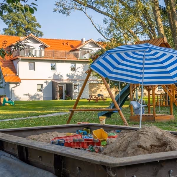 Gospodarze znają się na szczęściu dzieci. Latem organizują spanie pod chmurką, a dzieciaki kimają na tym, co same sobie wymyślą. Na podwórku cała masa czasozajmowaczy: kozacka tyrolka, plac zabaw, trampolina, huśtawki i niezliczona ilość kryjówek.