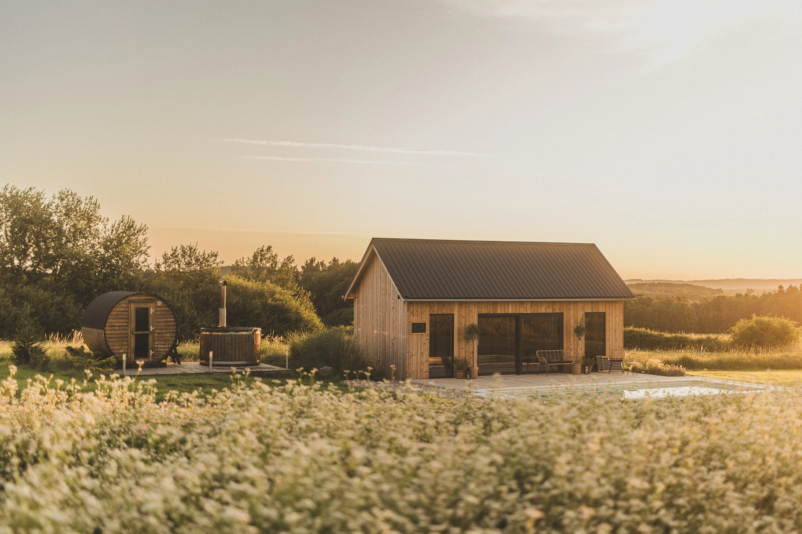 Domki są idealne dla pary, albo generalnie - dwójki. Na dzień dobry macie wino i kosz z lokalnymi przysmakami, który na życzenie może być nawet wege. Jeśli uda wam się wyjść z łóżka to polecamy kąpiele we mgle, bose spacery po trawie i wizytę u biebrzańskiej wiedźmy.' Wspaniałe miejsce w cudownej okolicy. Domki urządzone ze smakiem, ładnie wkomponowane w otoczenie, przytulne i funkcjonalne. Ogromnym atutem jest fińska bania w której można się wygrzać nawet przy mrozie. Bardzo malownicza okolica z wieloma szlakami pieszymi / rowerowymi i piękną dziką przyrodą w zasięgu ręki. Dodatkowo bardzo pomocny i sympatyczny Gospodarz. Podsumowująć - najlepiej!'.