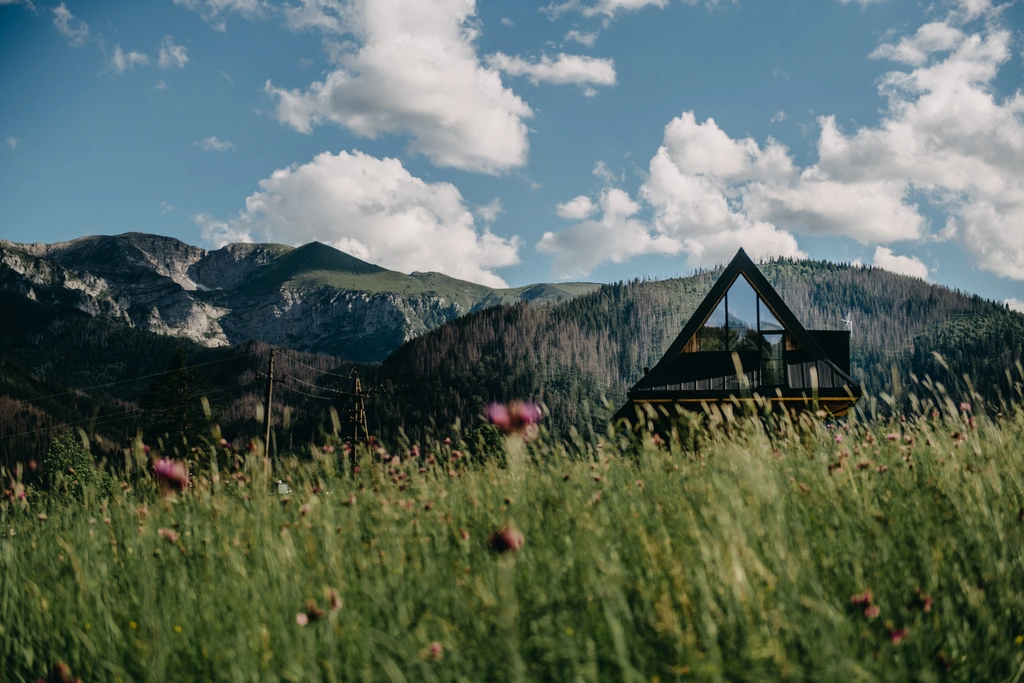 O Domu Zagórami było ostatnio całkiem sporo. Pisaliśmy o nim w ostatnim zestawieniu o stodołach i tym o fenomenalnych miejscówkach na Podhalu i tutaj też nie mogliśmy go pominąć. Za sprawą czwórki przyjaciół mamy tu fototapetę z Tatr Bielskich, Zachodnich i Wysokich w Łapszance oraz wiele punktów widokowych w samym domu - również w łożku i na kanapie. Jest automatycznie rozpalający się kominek na pellet i osłonięte miejsce widokowe przed domem. I od razu odpowiadamy- to nie jest fotomontaż.