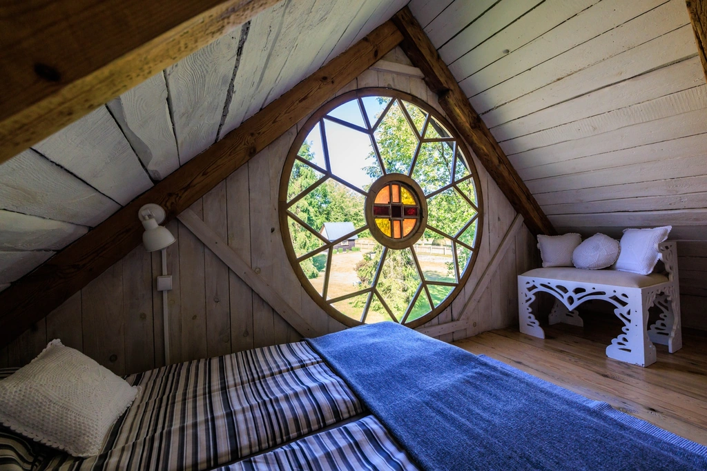Siedlisko Sobibór jest z nami prawie od początku, a patrząc na to urocze, okrągłe okno niezmiennie czujemy się jak w baśni i gwarantujemy, że to nie jest żadna scenografia. Zaczęło się od żywicznej chaty w otulinie Sobiborskiego Parku Krajobrazowego, a potem już poszło i wyszło całe siedlisko, czyli mikro osada na Polesiu Lubelskim, gdzie celebruje się naturę, wchłania ciszę i kosztuje prawdziwego jedzenia z ciepłym chlebem na czele. Możecie spać w starych zabudowaniach albo w domkach w koronach drzew. To najbardziej rozchwytywane studio koronkowe w stajence, z 200-letnim, drewnianym oknem w kształcie Gwiazdy Betlejemskiej i widokiem na łąkę, działa tylko w ciepłym sezonie.